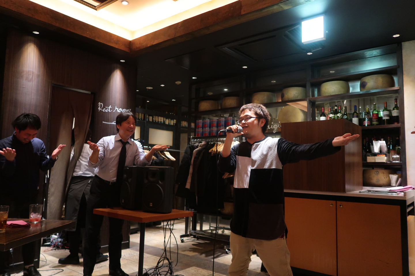 基本的には月末の金曜日に実施されおり、「報告会」と「全体飲み会」があります。