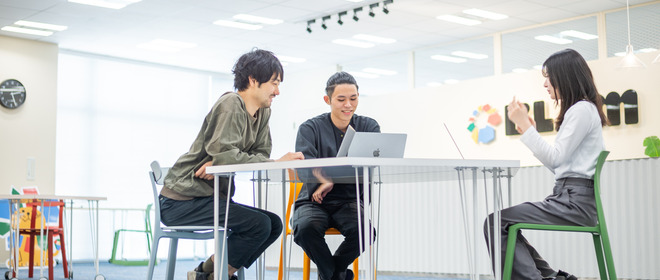 新卒入社から3年で事業部長になった社員もいるくらい年齢や経験にとらわれずにチャレンジしやすい会社です。デジタル領域未経験で入社した社員も、BLAMでキャリアアップできる背景には「活発なコミュニケーション」と「フィードバック文化」が起因しており、ひとりが成果を創るのではなく、チームとして最高の成果を追い求めるための環境が整っています。
