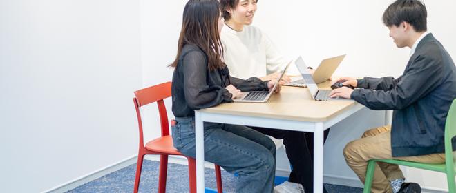 社員のキャリを起点とした社内ジョブチェンジ制度があり、社内で 様々な職種や職位にチャレンジすることが可能です。インターンし入社からデザイナーへキャリアアップやエンジニアからセールスにジョブチェンジ、未経験で新規事業開発に抜擢されたメンバーなど、たくさんの事例があります。