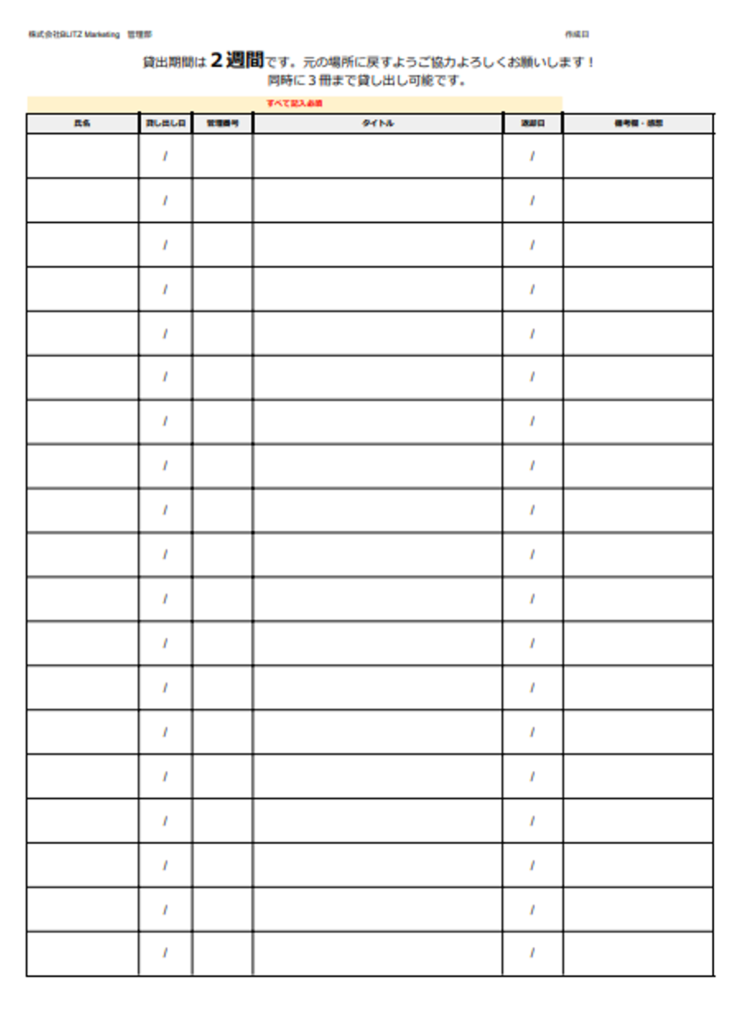 私たちのオフィスには、社員の知識と成長をサポートするために設置された社内図書があります。この図書は、福利厚生の一環として提供されており、誰でもいつでも自由にレンタル可能です。本をレンタルする際の手続きもとても簡単で、専用の記入シートに自筆で情報を書き込むだけです。これだけで、好きな本を手に取ることができます。