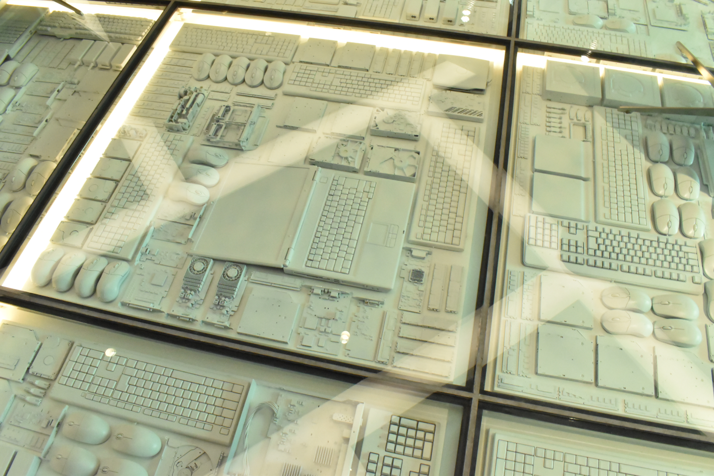 エントランスの床には、使わなくなったマウスやキーボードが敷き詰められています。