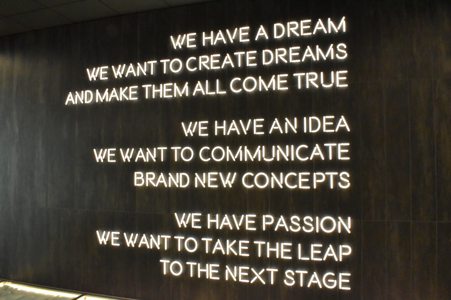 エントランスの壁には英文のメッセージがありました。