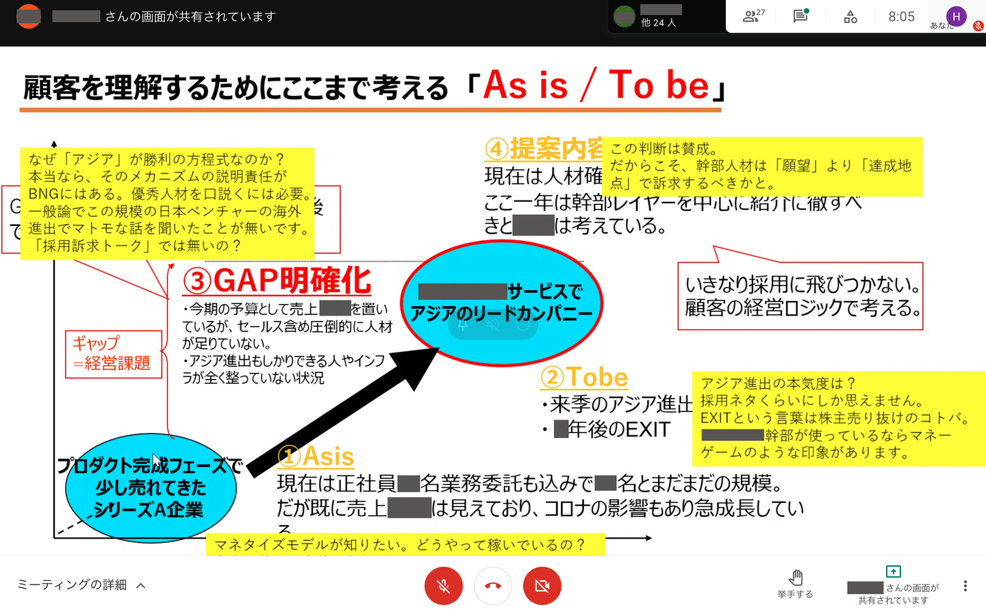 これは「クライアントにおける課題などを分析し、事業内容の提案、それに合った人材のご提案をしていく」という目的意識が前提にあったからこそ、発せられた発言だったのではないでしょうか。