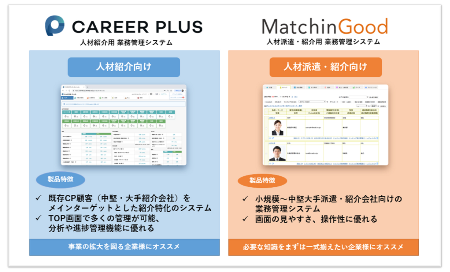 ▲弊社を代表する2つのプロダクト「CAREER PLUS」、「MatchinGood」