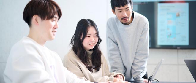エンジニア、デザイナー、営業、コーポレートなど、部門の枠を超えて協力することが当たり前。エンジニアがデザイン視点を取り入れて開発したり、営業を通じてお客さまの意見をサービスに反映したり。メンバーの課題や成長を自分ごとに捉え自発的に行動し、多角的な視点から問題解決力を磨いています。