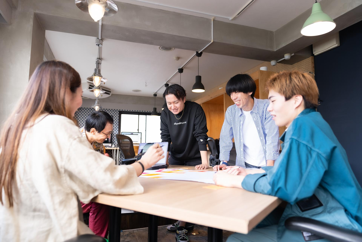 このページは、もちろんリクルーターに向けてつくるものです。では、リクルーターはどんな気持ちでこのページに訪れるのか? 自分も経験があるのですが、きっと「自分でも働くことができるのか」と不安になっているはずです。ならば、いきなり採用情報を文字で伝えるよりも、まずは明るめのビジュアルを見せた方が、圧迫感がなく、安心してくれるのでは……というように、ユーザーの感情を想像しながら、社内ミーティングを繰り返し、最近入社したスタッフにも意見を聞いたりしながら、デザインを進めていきました。