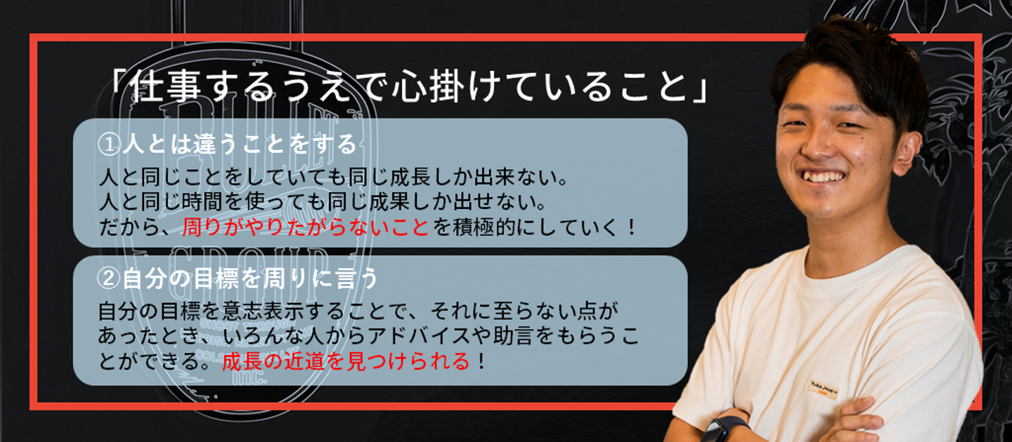 「僕と2歳しか違わないのに…。この人についていきたい。同じ環境で戦いたい!」と思うようになり、この時から桜井さんは僕の目標の一人となりました。それから諦めずにアタックし続け、バレットグループへの熱意を人事の方にぶつけまくって内定をいただくことができました。