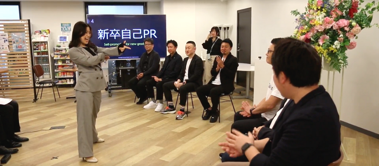 また、入社式では例年の決意発表とは異なり1分間の自己PRタイムを行いました。