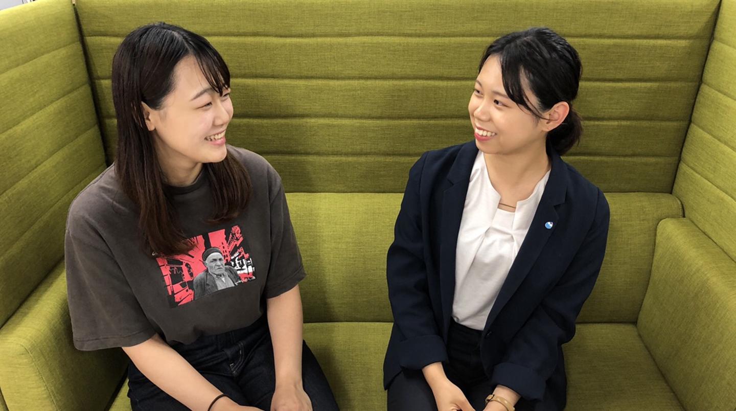 お仕事に対する不安や心配事から、大学生活やプライベートのことまで話せるお姉さんいうイメージ。実際に私が内定者時代にもプレ上司の先輩がいて、沢山助けてもらいました。
