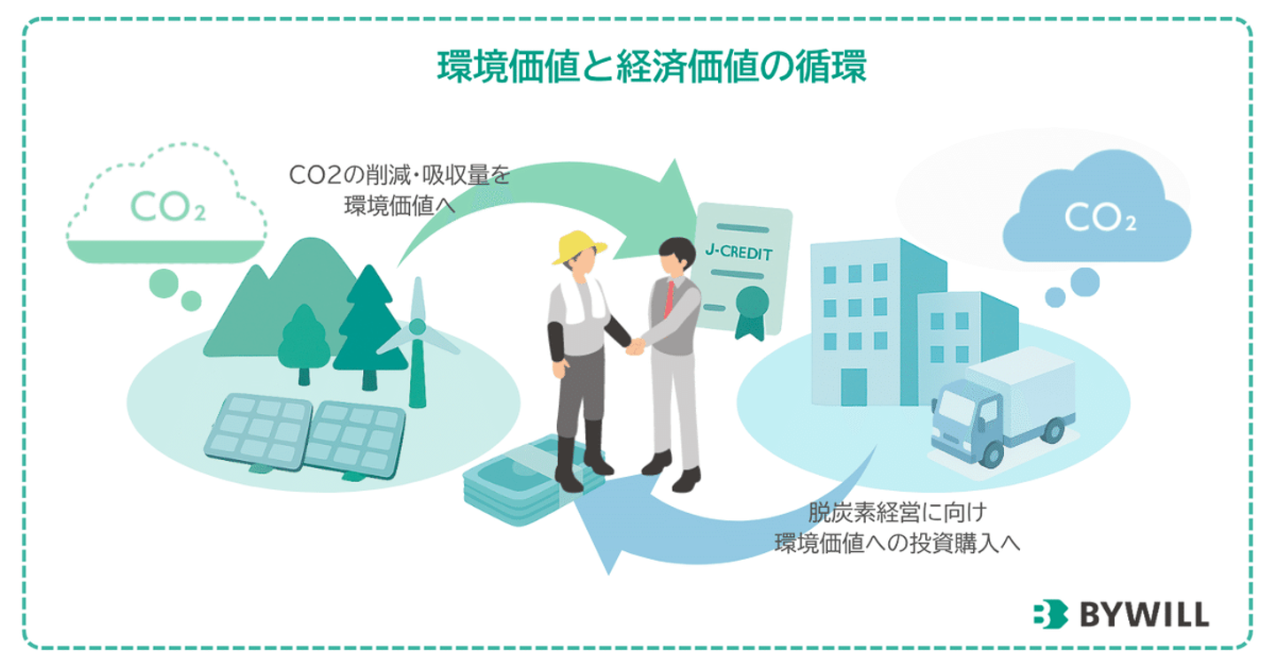 Jクレジットによって生まれる環境価値と経済価値の循環