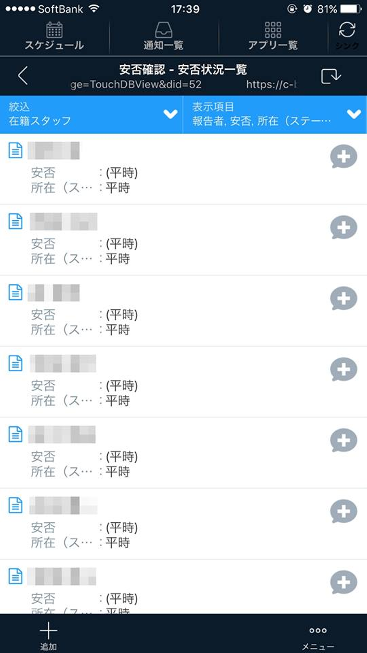 避難が完了したら「安否確認アプリ」を使い、安否や所在(移動中/帰宅など)を、当日は随時更新するようにします。