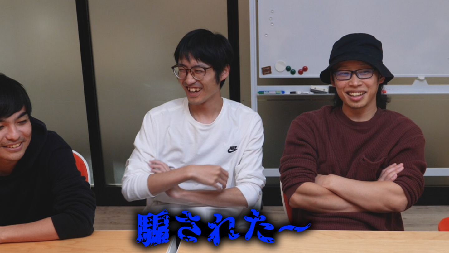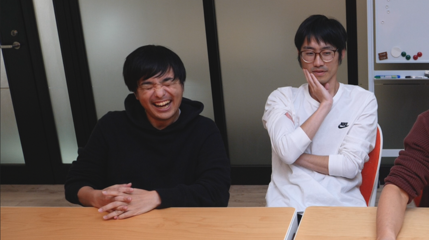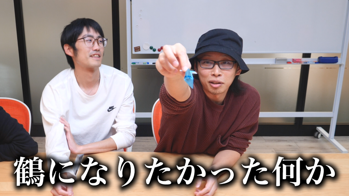 折鶴登場と同時に笑いが止まらない、先輩社員のお2人…笑
