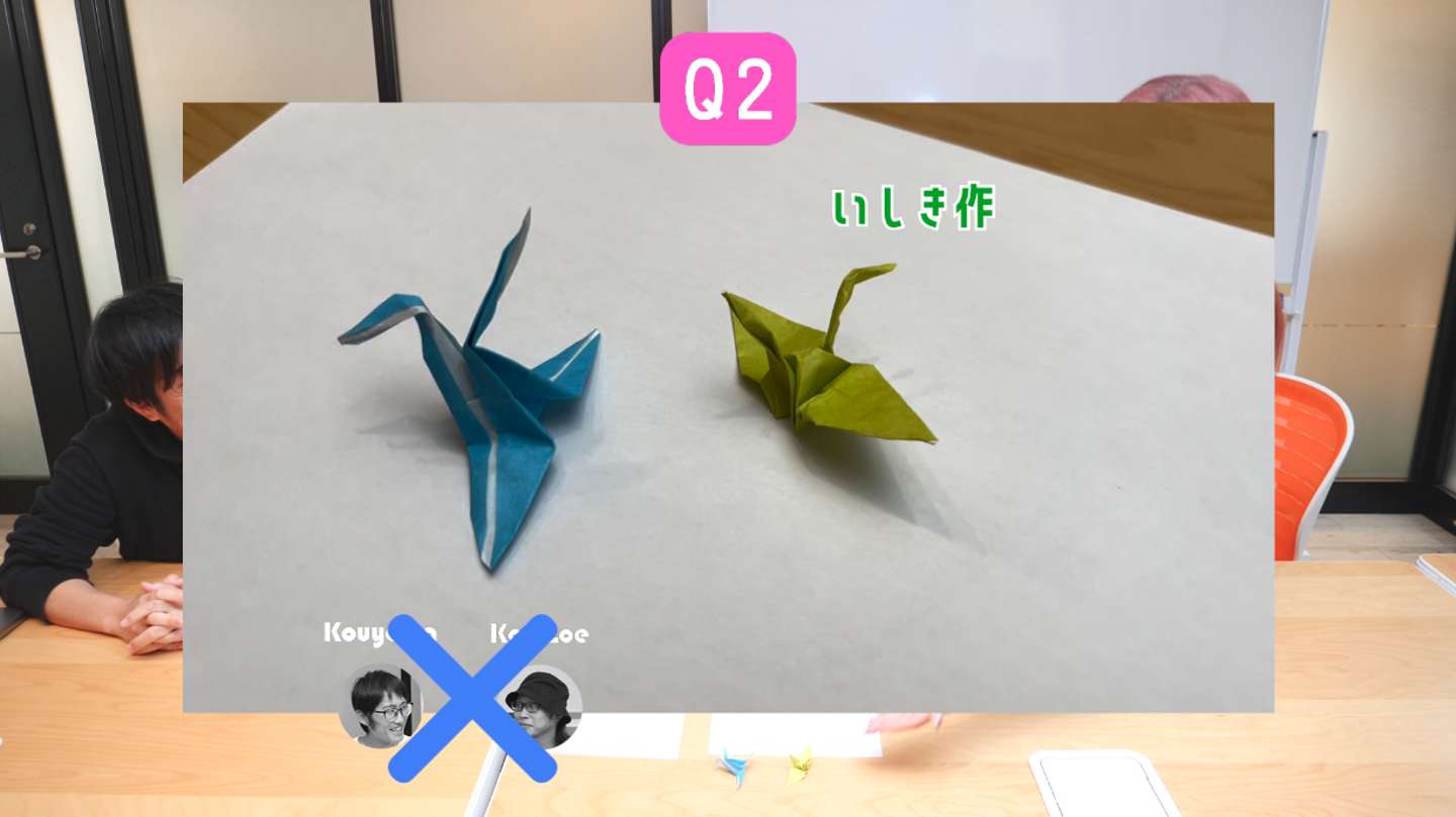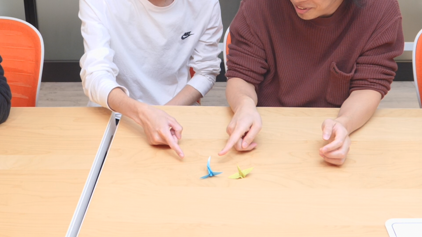 ということで、水色の折鶴を選んだ先輩社員のお2人は不正解でした!