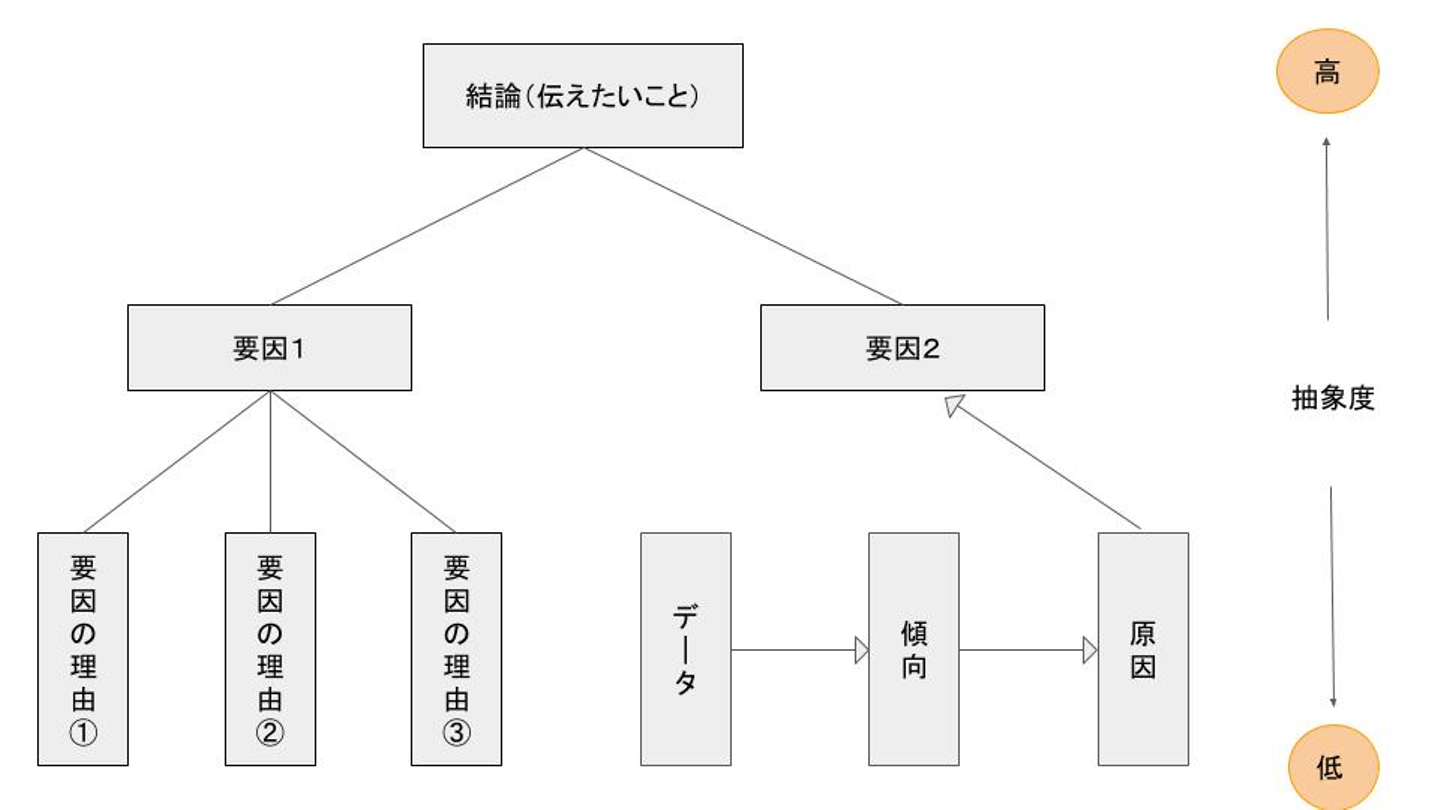 先日学んだ、ピラミッド構造のプレゼンの骨組みが役に立つと思うので、図にしてみます。