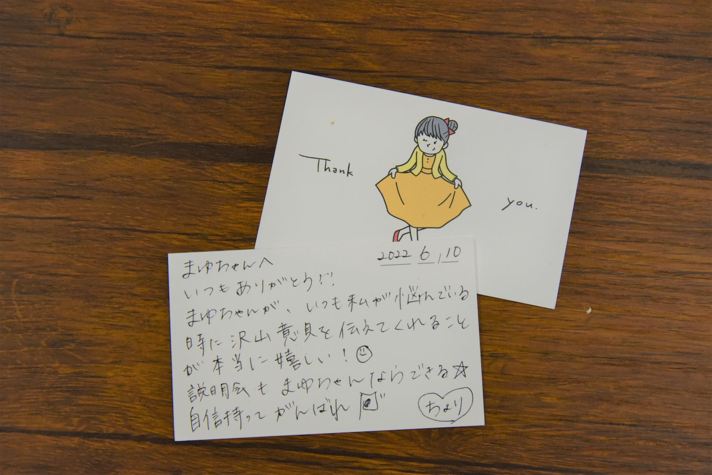 いつもお世話になっているちょりさんからありがとうカードをもらえるのは本当にうれしいです!