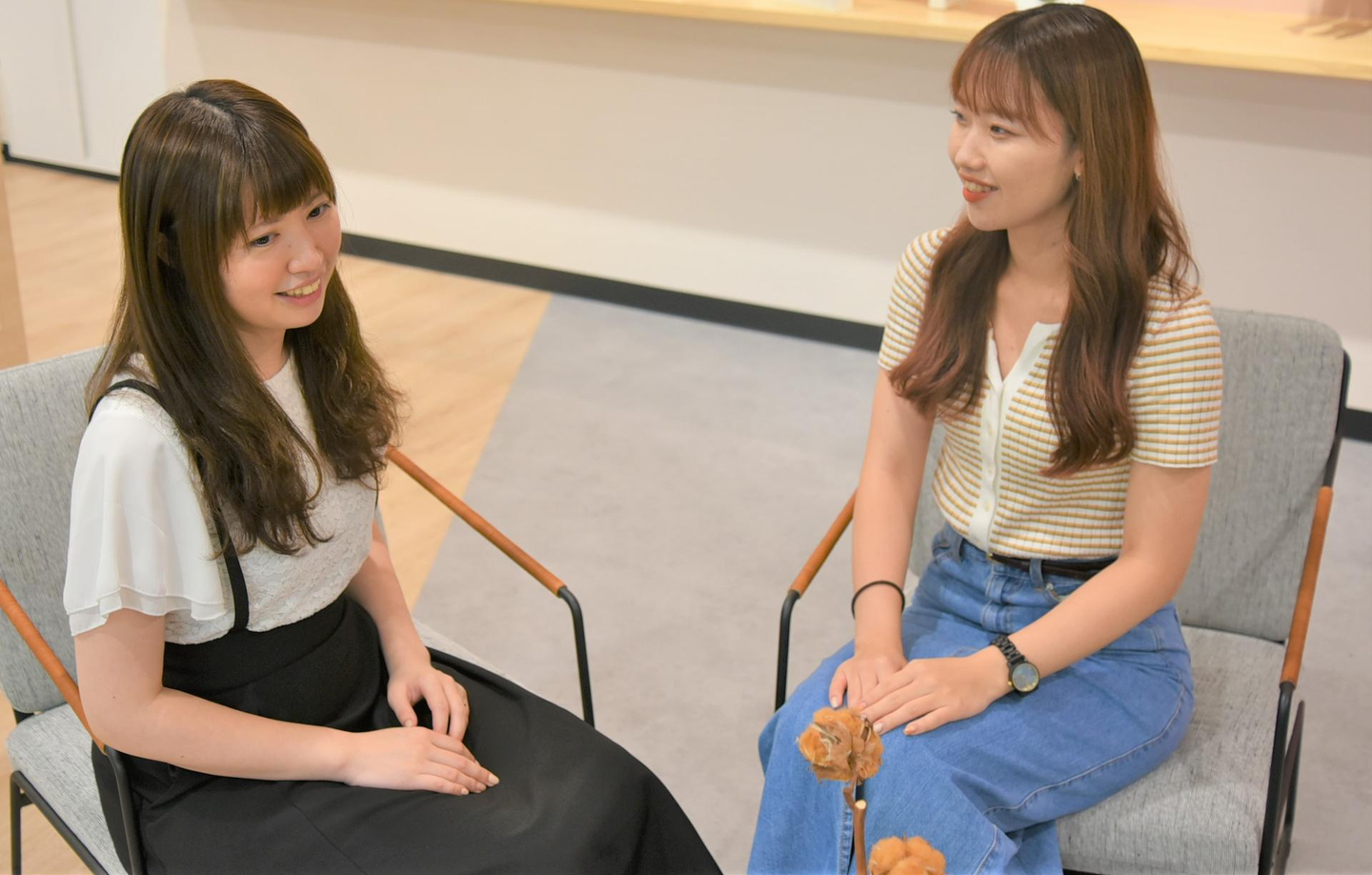 朴澤:社員の雰囲気の良さに惹かれ入社を決めました!やりたいことや理想像について不明確であっても 受け入れてくださり、また働いている先輩方がとても楽しそうにしているため、私もこの中で働きたい! と感じました。