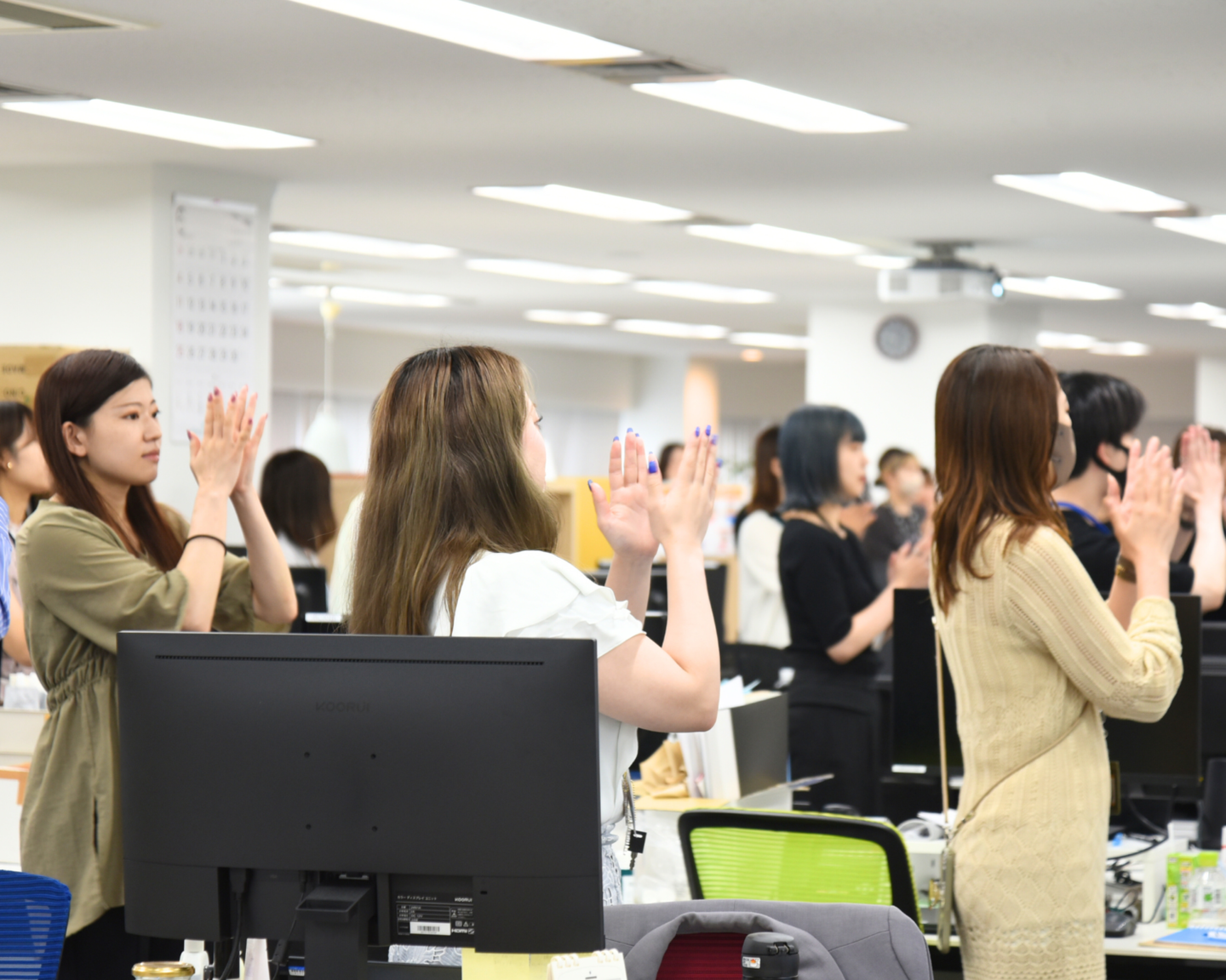 ネクステージGroupには承認を大切にする文化があります。発表した社員に向けて「発表してくれた感謝の気持ち」や「良い発表だったよ」という想いを込めて発表後に合いの手をいれます。
