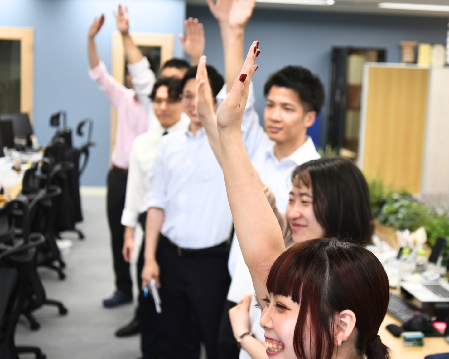 ネクステージGroupでは、自分の成長を実感できるよう、さまざまな取り組みを実施しています。その一例が朝礼です。ほかにも研修・会議・実際の業務などの成長の機会はたくさんありますが、大切なのはチャンスが与えられるのを待つのではなく、自分でチャンスをつかみとることです。チャレンジした先に失敗があったとしても諦めずにチャレンジし続けることが大切だと考えています。ビジョンの実現や人間力向上のために全員が本気で取り組んでいる会社だからこそ「人として成長し、人として成長させる」カルチャーを一緒に創り、同じ未来を描ける仲間と働いていきたいと思っています。