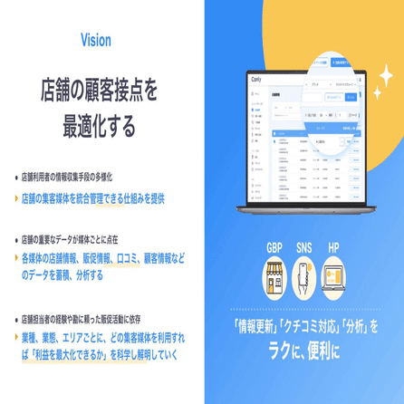今では、カンリーホームページはビジョンである「店舗の顧客接点を最適化する」ためには不可欠なプロダクトとなっており、日本を代表する大手チェーン企業様にもご活用いただくまでに成長しています。