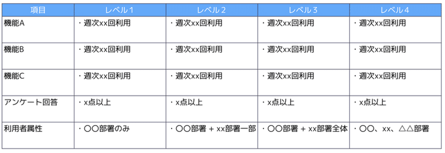 上記のインタビューを経て、お客様がプロダクトに求めているもの、欲しいサポートなどが明確になると、顧客ニーズを起点にした支援パッケージやヘルススコアが自然と作成でき上がり、CSチームとして行うべきアクションやサクセスイメージが出来上がってきました。