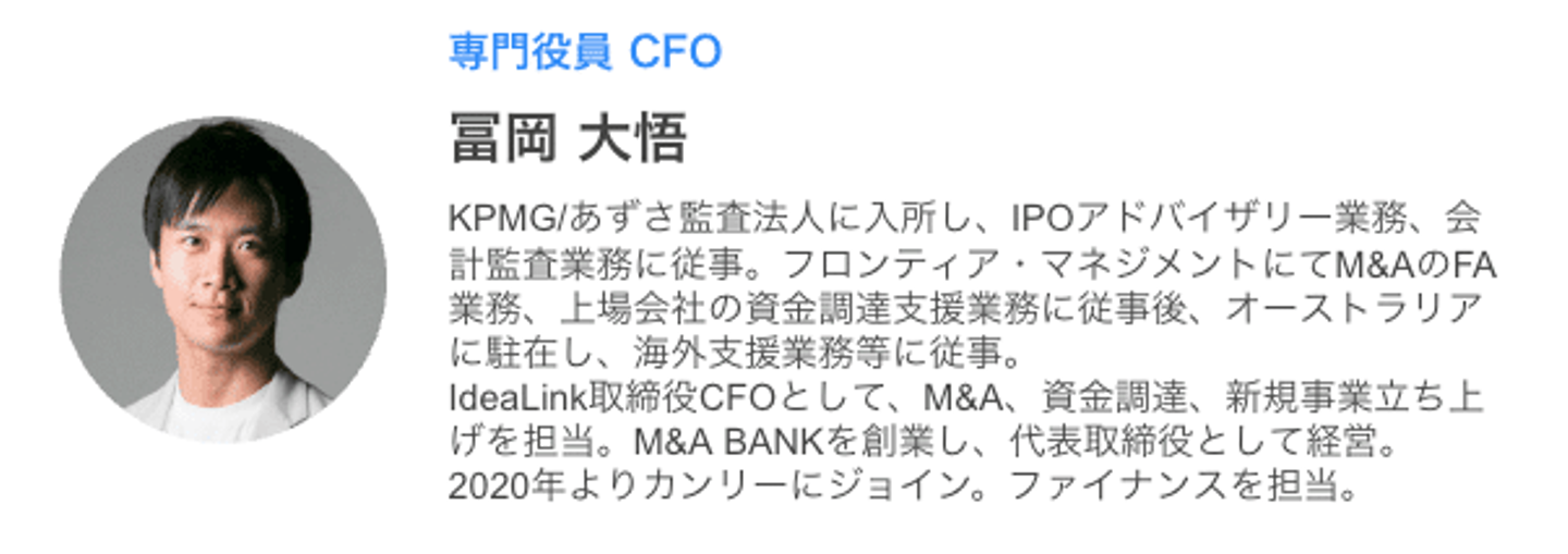 冨岡:私は2020年の秋頃からカンリーと業務委託で関わり、翌年の1月に正式にCFOとしてジョインしました。会社としては「カンリー」をちょうどリリースしたタイミングで、コーポレートとしては実質1人管理部のような状態でした。