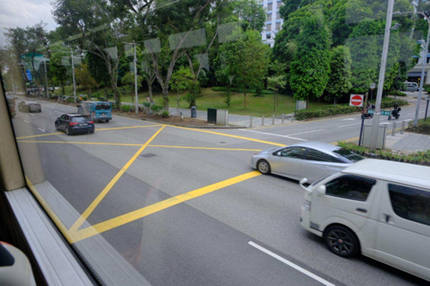 自分も日本の教習所では「信号待ちの時に交差点内では停止せずに空けるのがマナー」と教わりましたが、シンガポールではそれが交通ルールで決められているようでした。