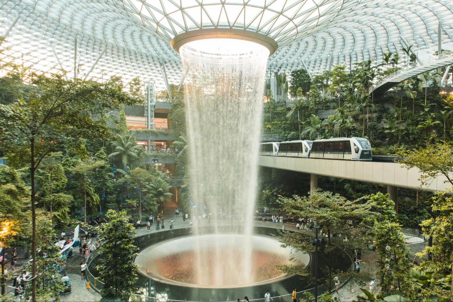 シンガポールにはモシェ・サフディの作品がもう一つあります。それがジュエル・チャンギ空港(Jewel Changi Airport)です。シンガポール・チャンギ国際空港内に2019年に開業した多機能複合施設で、空港ターミナル、ショッピングモール、エンターテインメント施設を兼ね備えており、チャンギ空港の国際的な魅力を一層引き立てています。