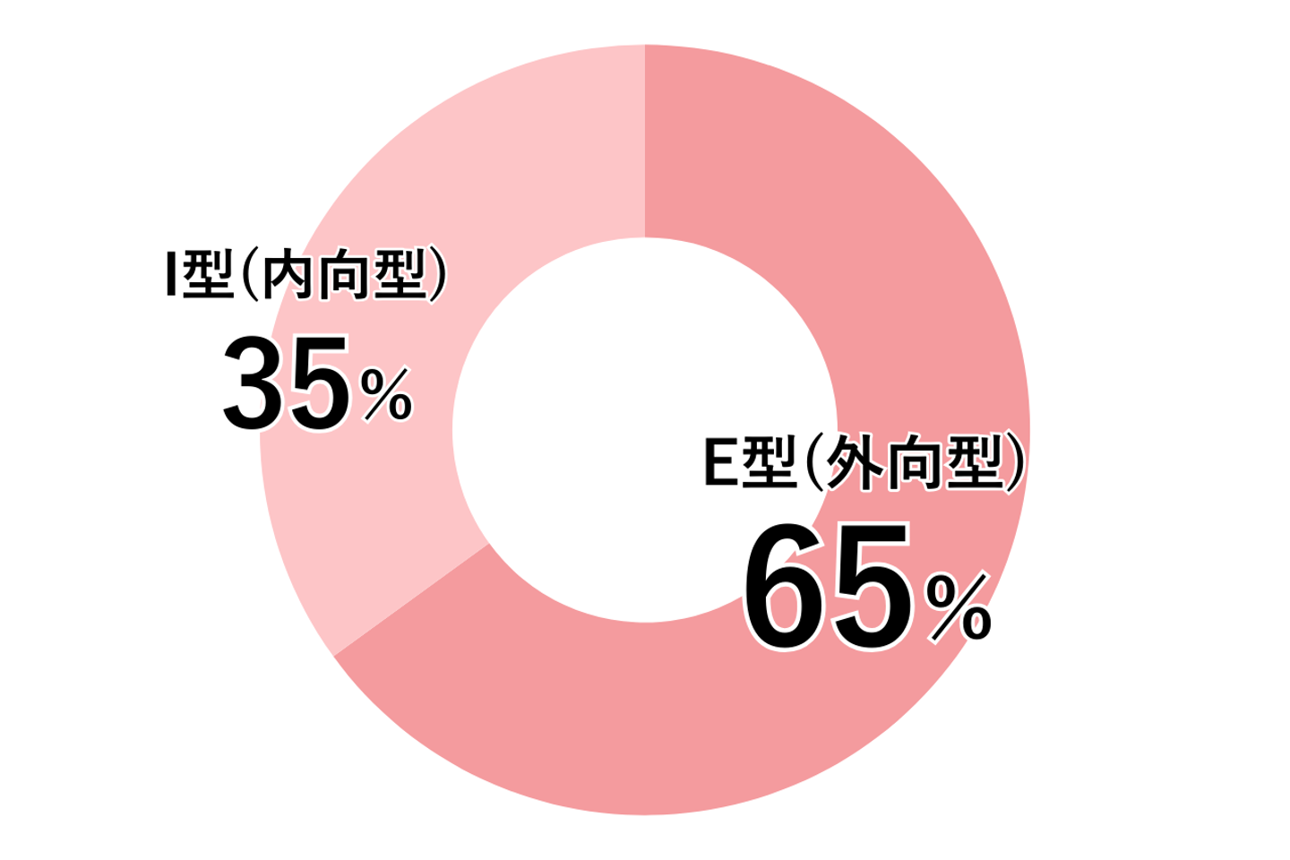 E型(外向型)が半数を超える65%を占め、I型(内向型)が35%。