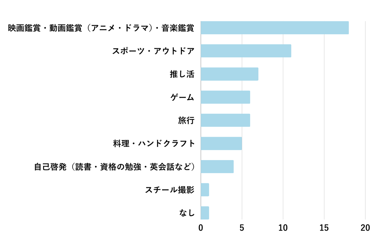 一番多かった趣味は「映画鑑賞・動画鑑賞(アニメ・ドラマ)・音楽鑑賞」でした!