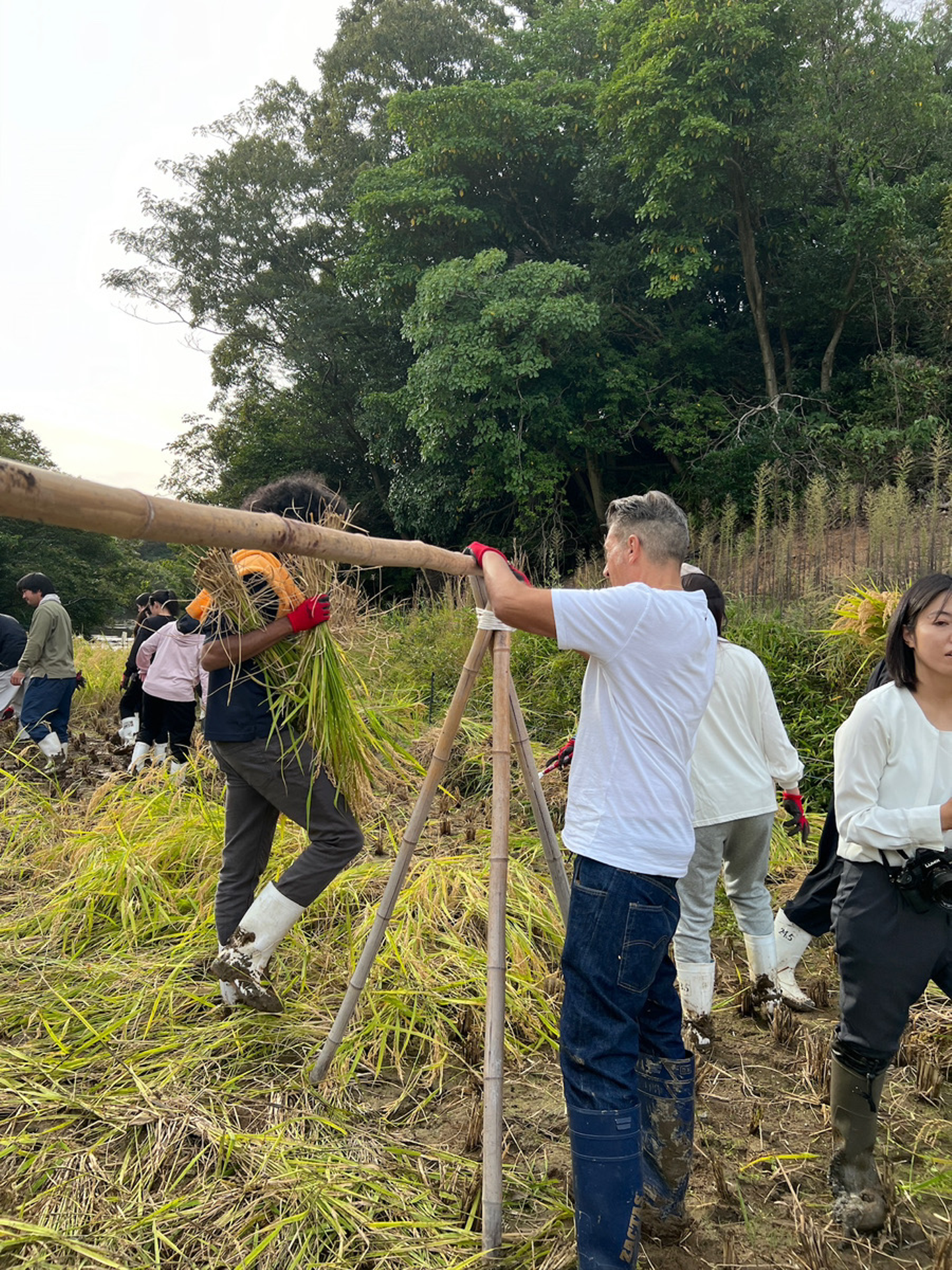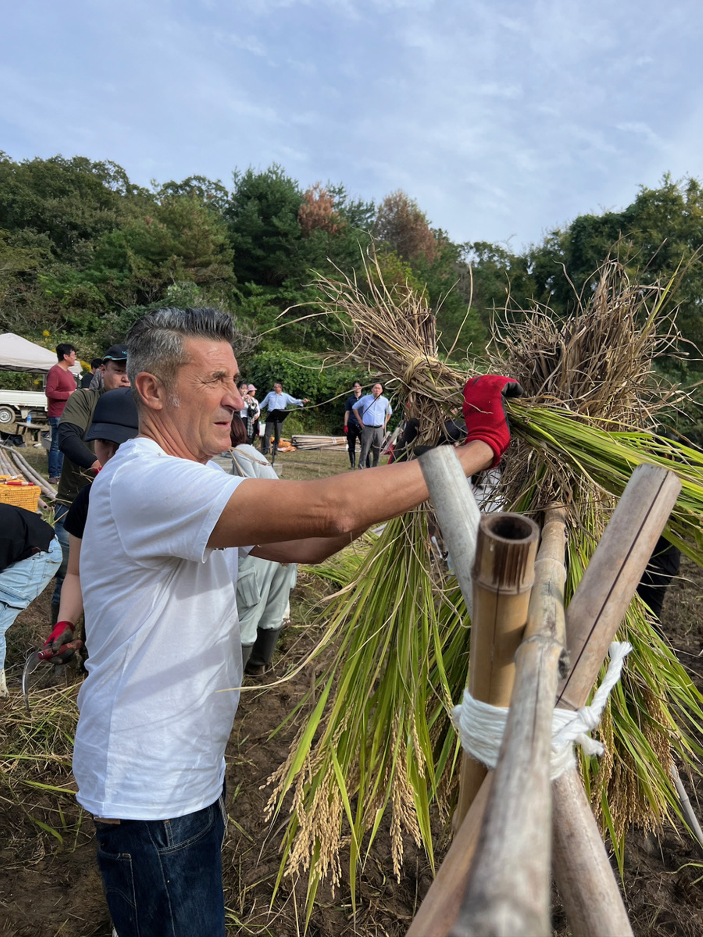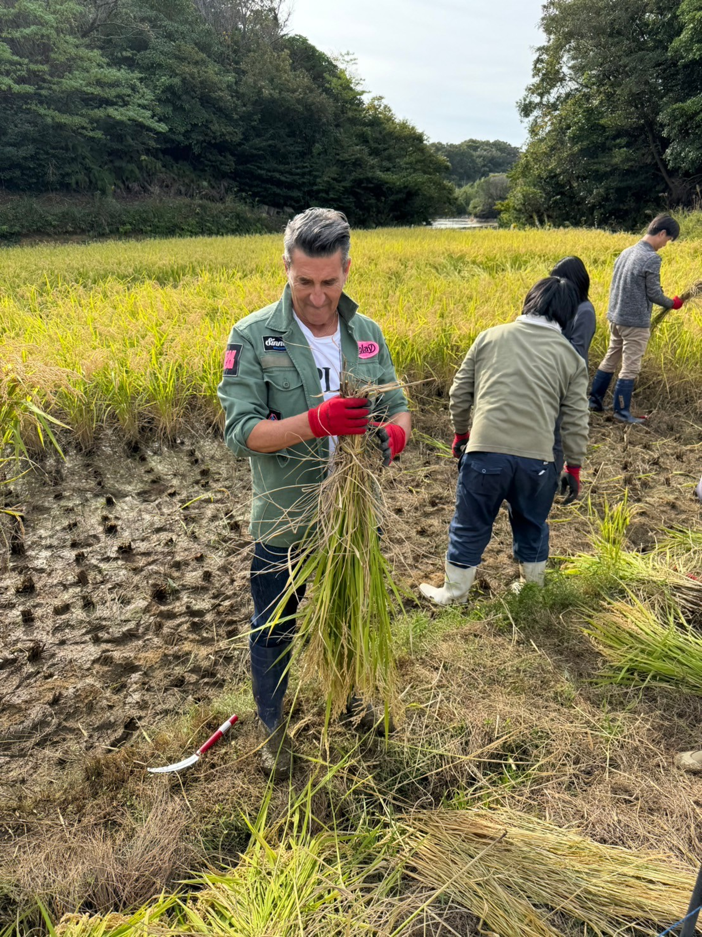 そんな中、ジローラモ氏は率先して稲を刈り、今回参加してくださった方たちも楽しそうに稲刈りを体験されていました。