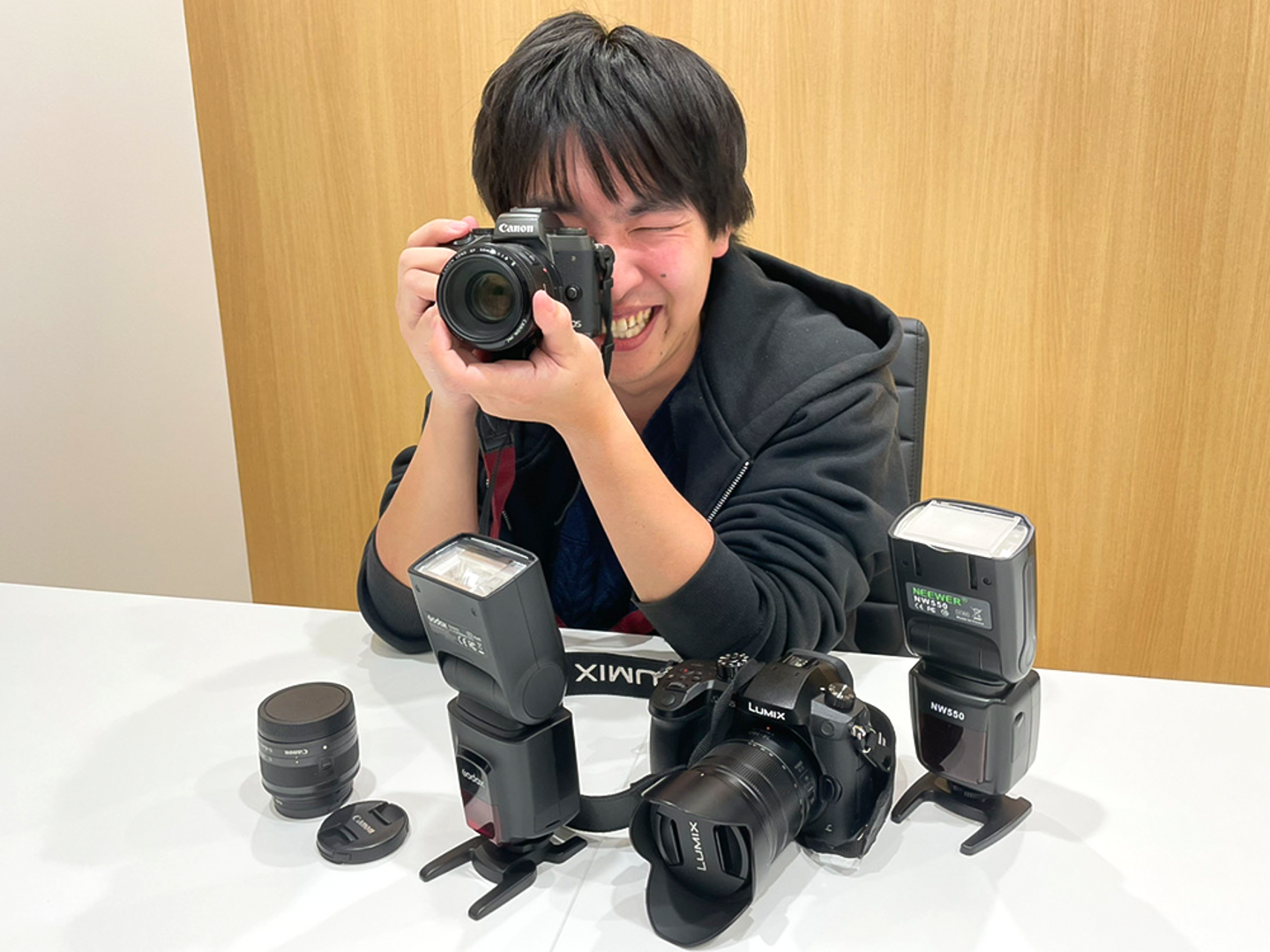 榎戸さん:インタビュー楽しみにしてました!カメラマンの榎戸です。普段は編集業務を中心に写真撮影や動画撮影も担当しています。食品やクリエイターグッズ、クリエイターの宣材写真まで、幅広く撮影しています。とにかく写真の撮影が好きで構図を工夫して思い通りの一枚が撮れた時は興奮してテンションが上がります。