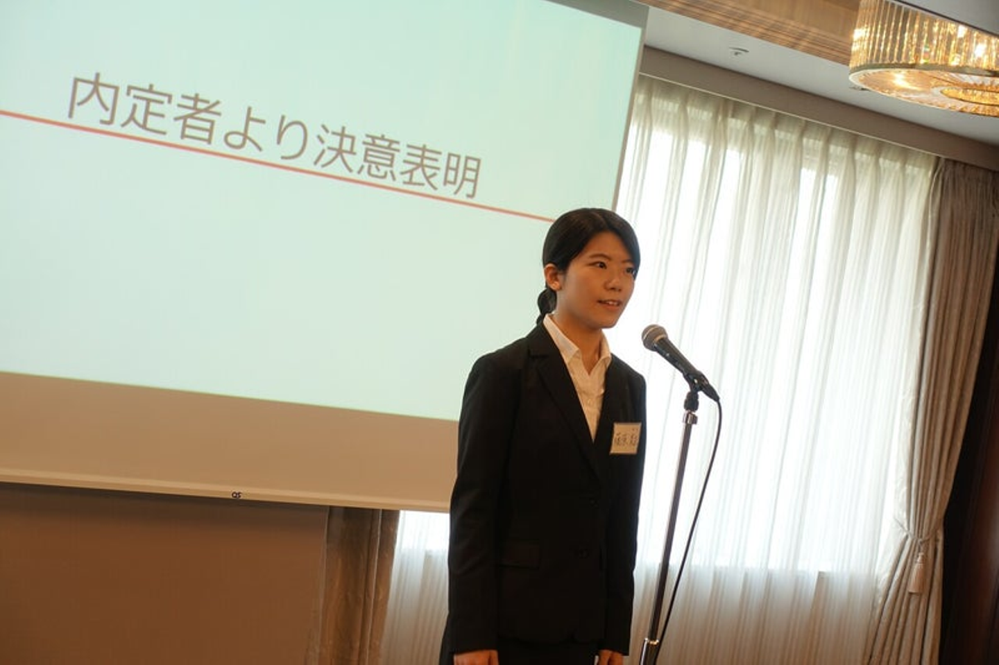 入社を目前に控えた内定者の決意表明では、全員が新しい環境に飛び込むこと、新しい挑戦に対し抵抗がなく、むしろ楽しんでいる様子が印象的でした。