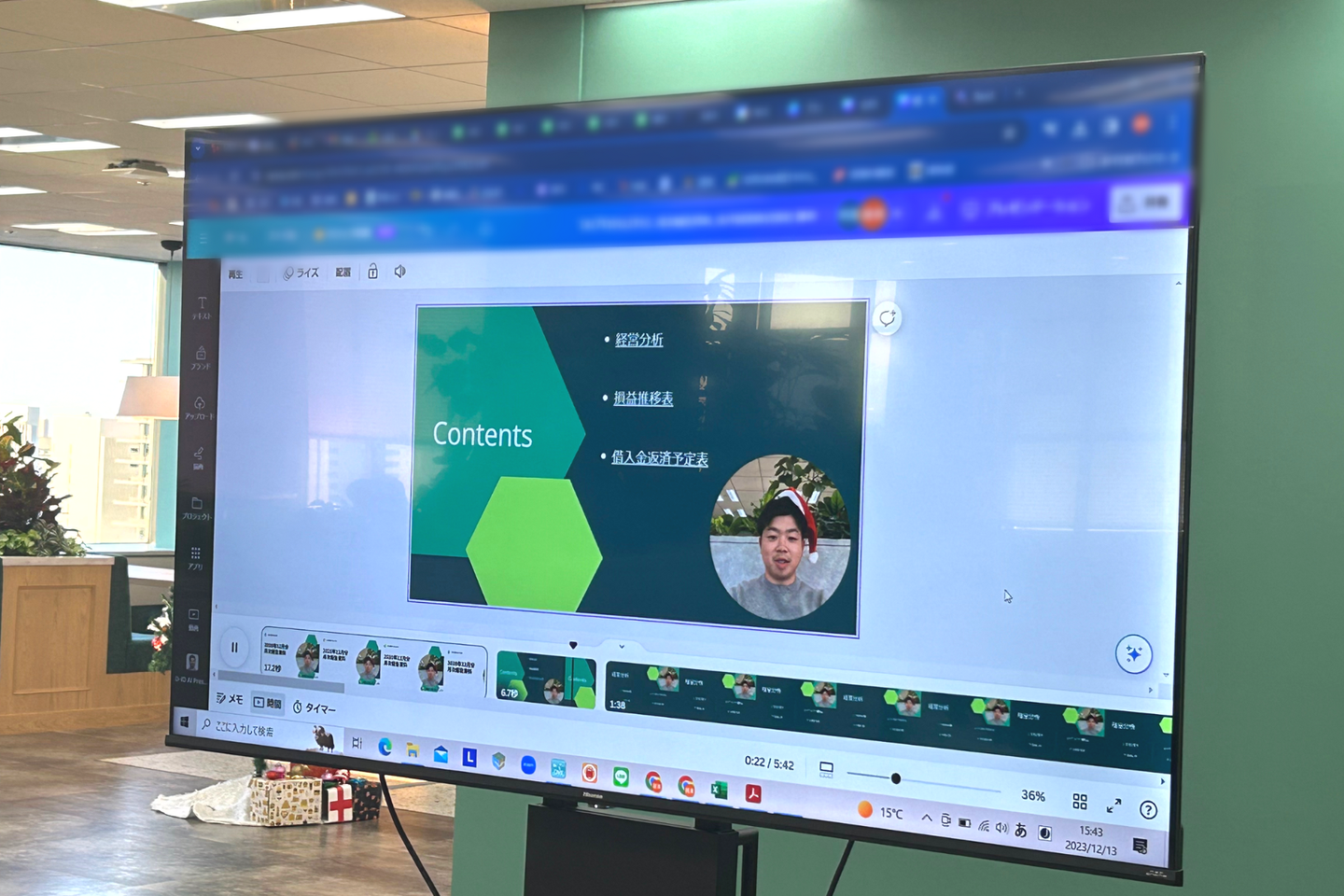 季節に合わせた装飾をつけた厳さんが登場し、月次報告をします🎄