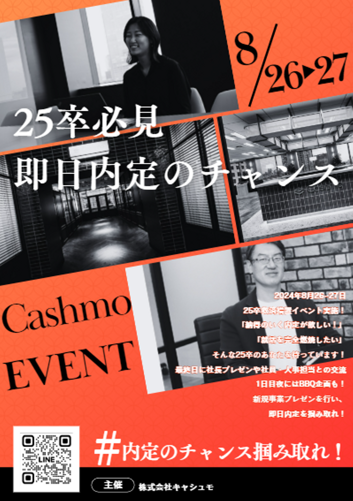 3. キャリアの選択肢が広がります。キャシュモの事業やカルチャーを深く知ることで、自分の将来の可能性が見えてくるかも!