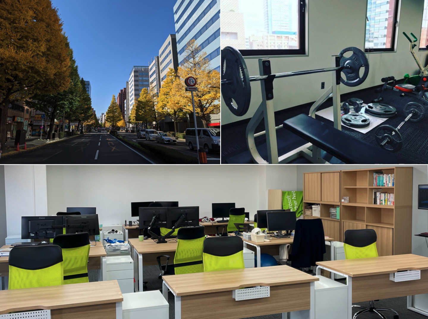 ちなみに私は出社時には右上のベンチプレスで軽く筋トレして頭をスッキリさせてから業務を開始しています(笑)