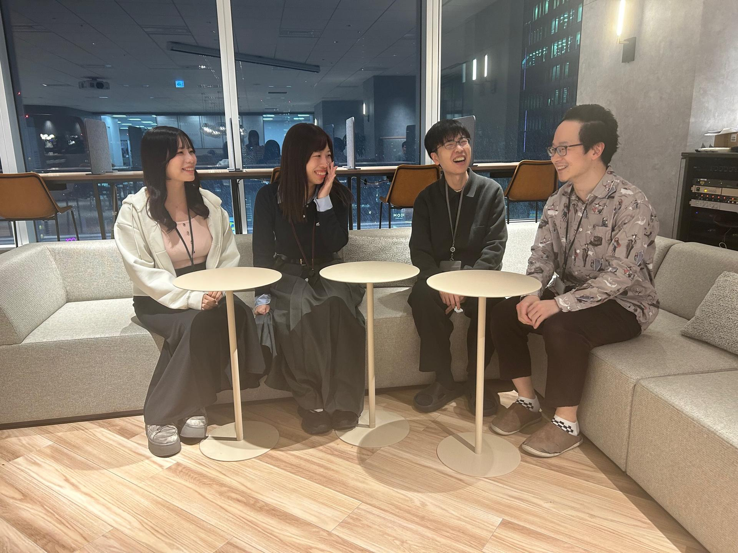 部署の垣根を超えた交流も盛んです。管理部の2名も交えて、和やかにお話する様子を撮影しました!