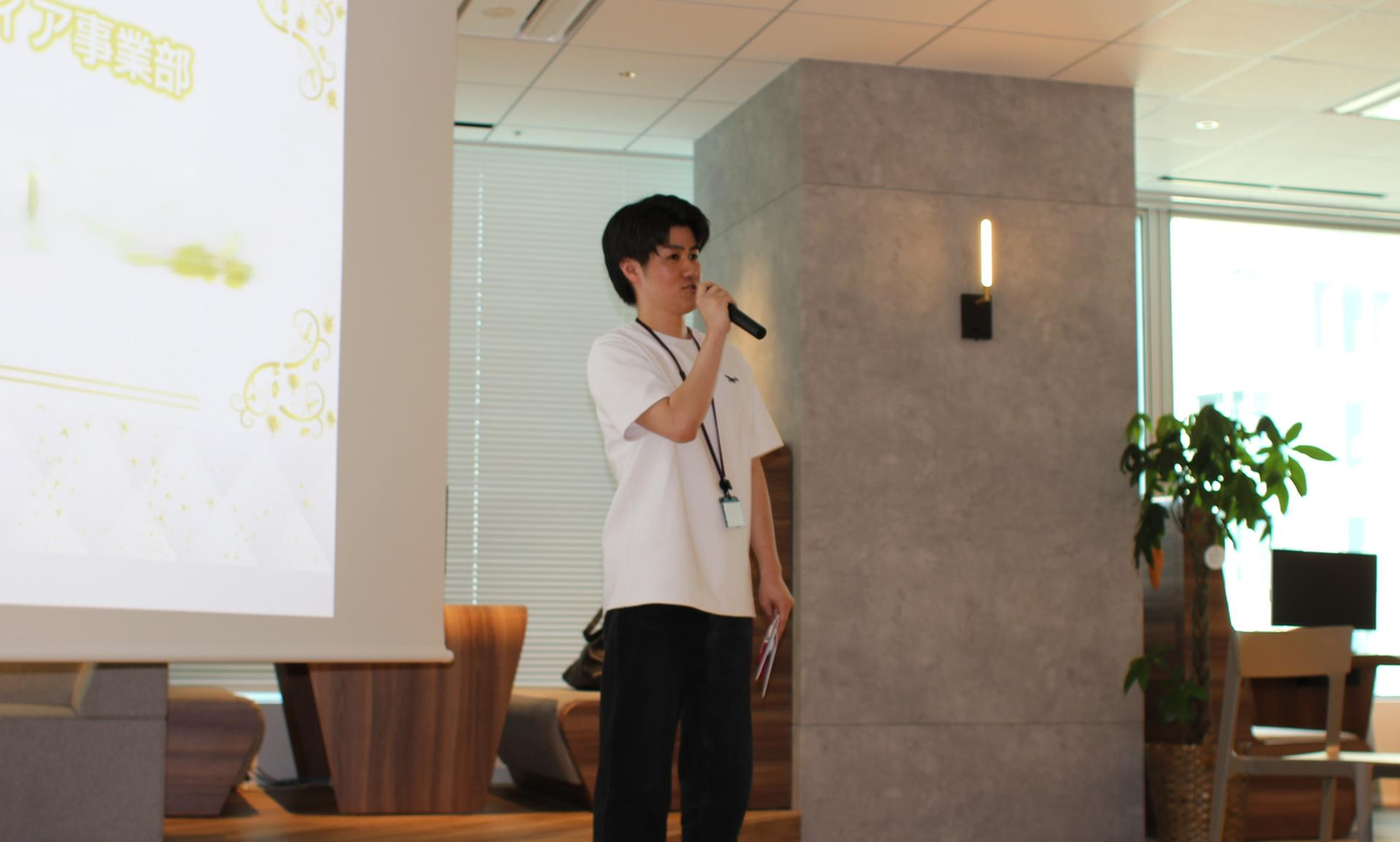もうひとりは、管理部門から人事総部人事・総務グループのSさんが受賞し、チームメンバーに「取ったよ!」と一言。