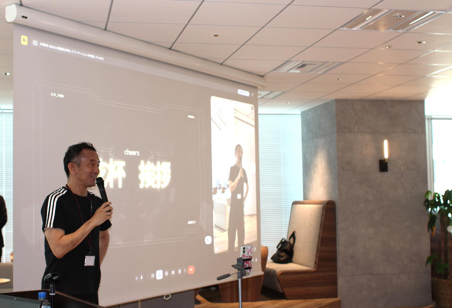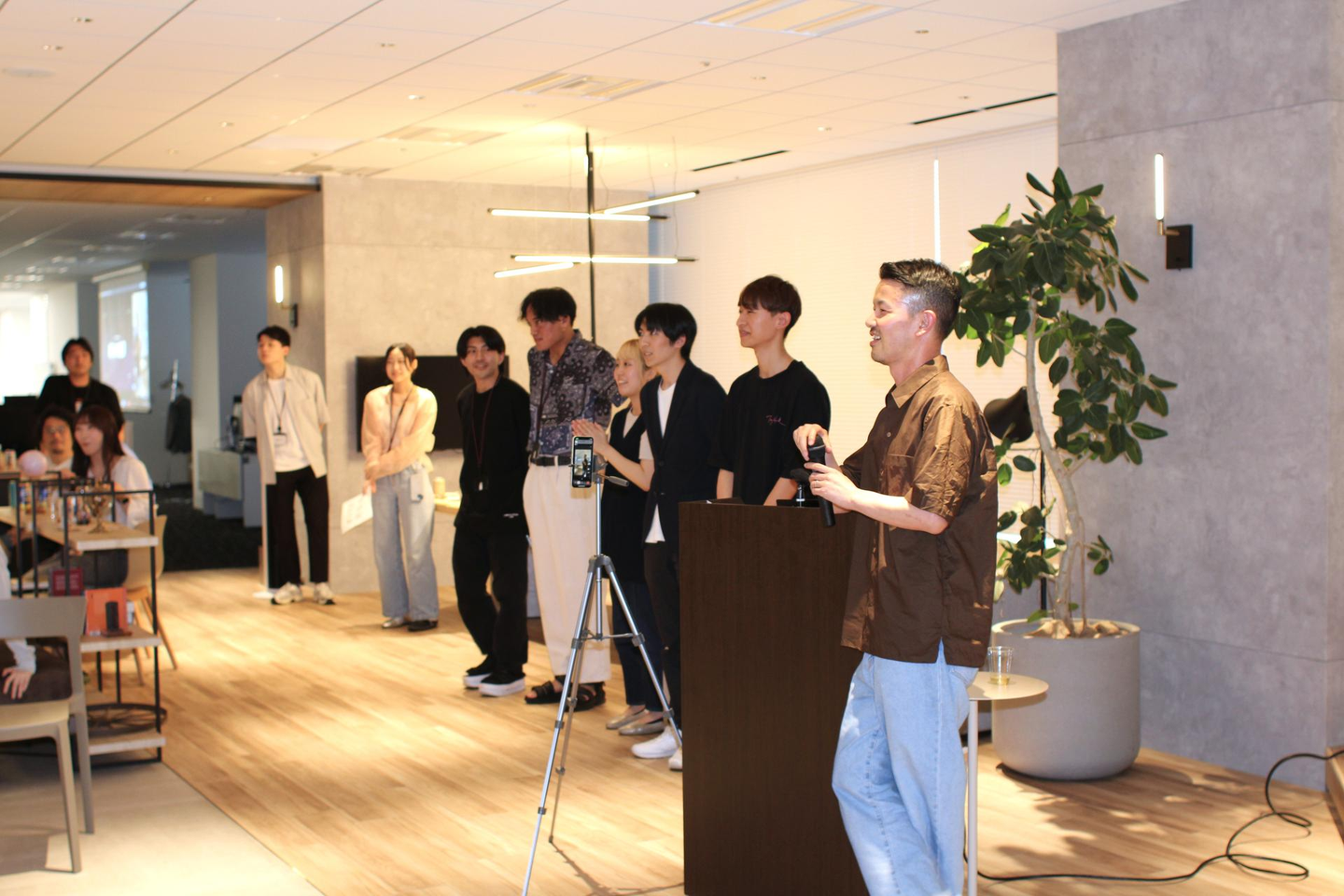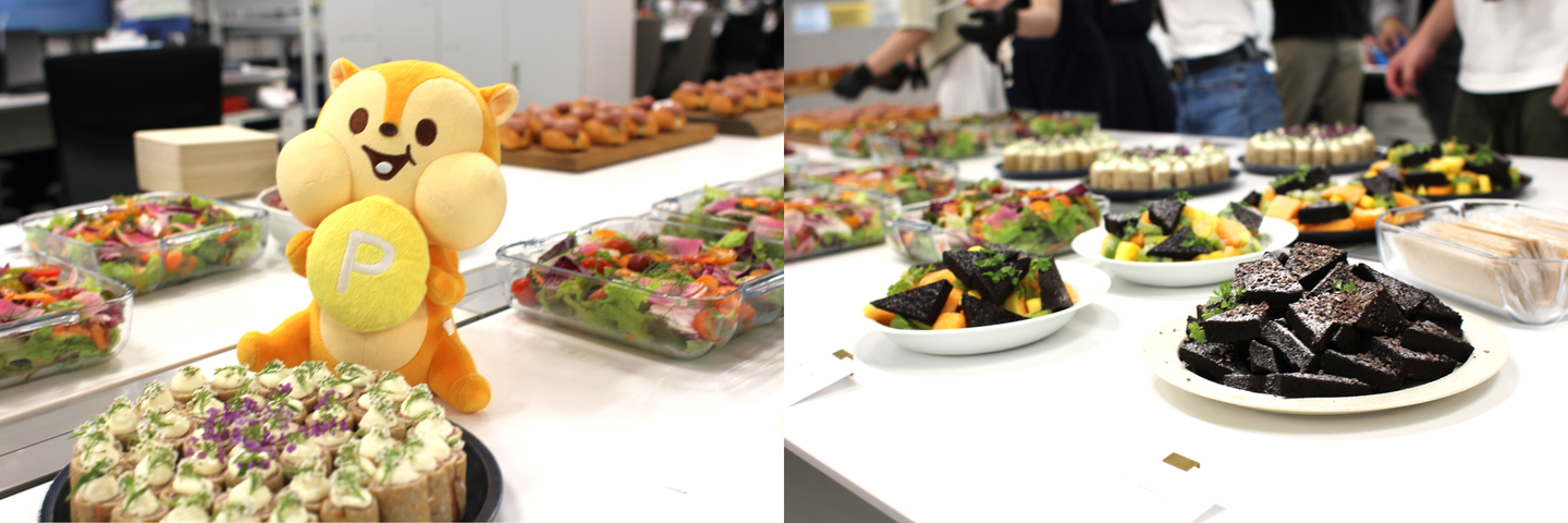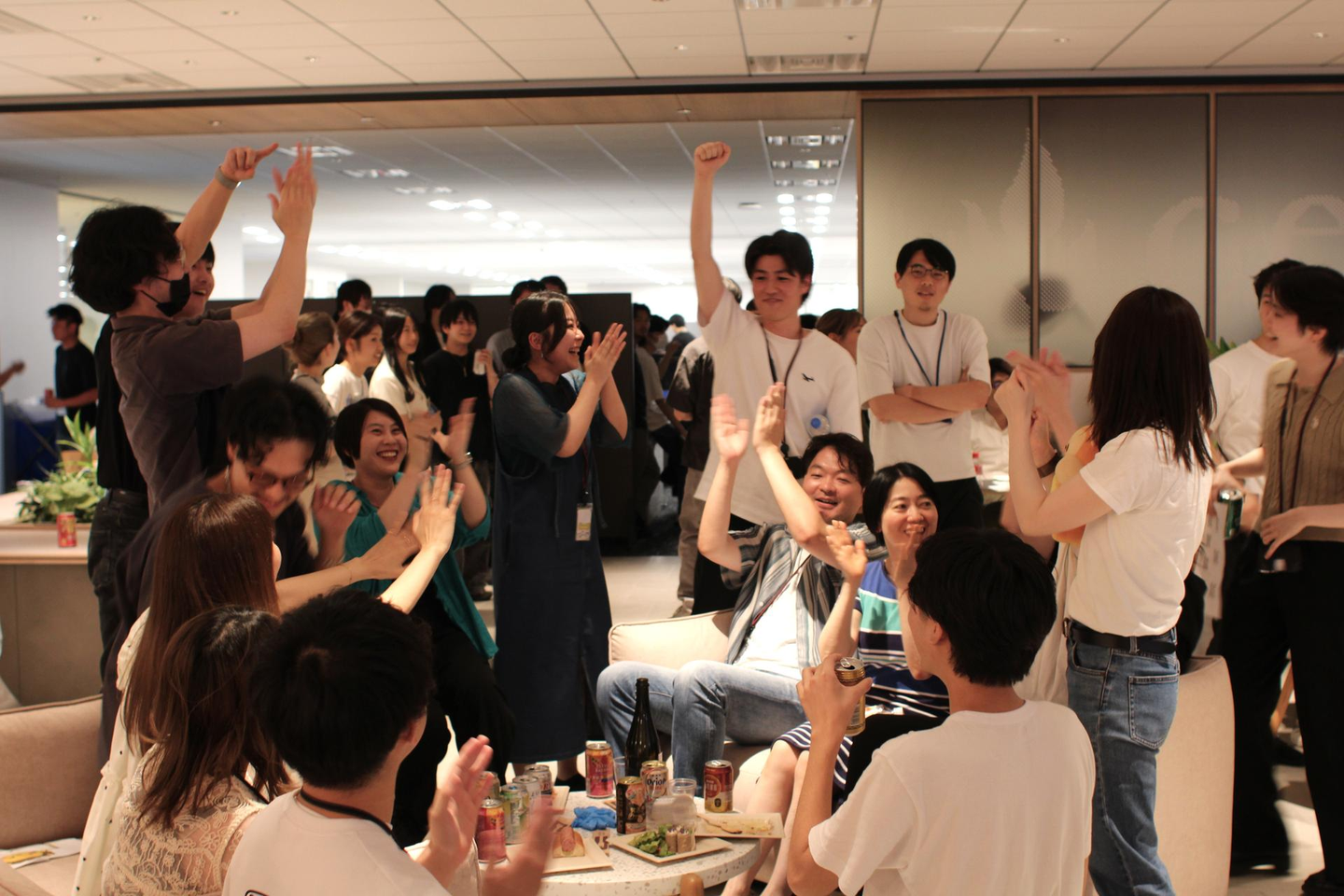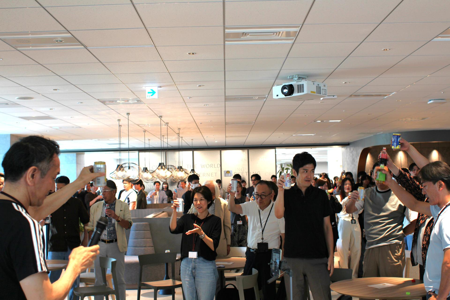 都木社長から「組織も大きくなっているので、今回の全社会のテーマでもある”つながる、混ざる、ひらく。”を体現し、普段話さない方々とも交流を深めてもらいたいです!」と挨拶があり、カンパイへ!