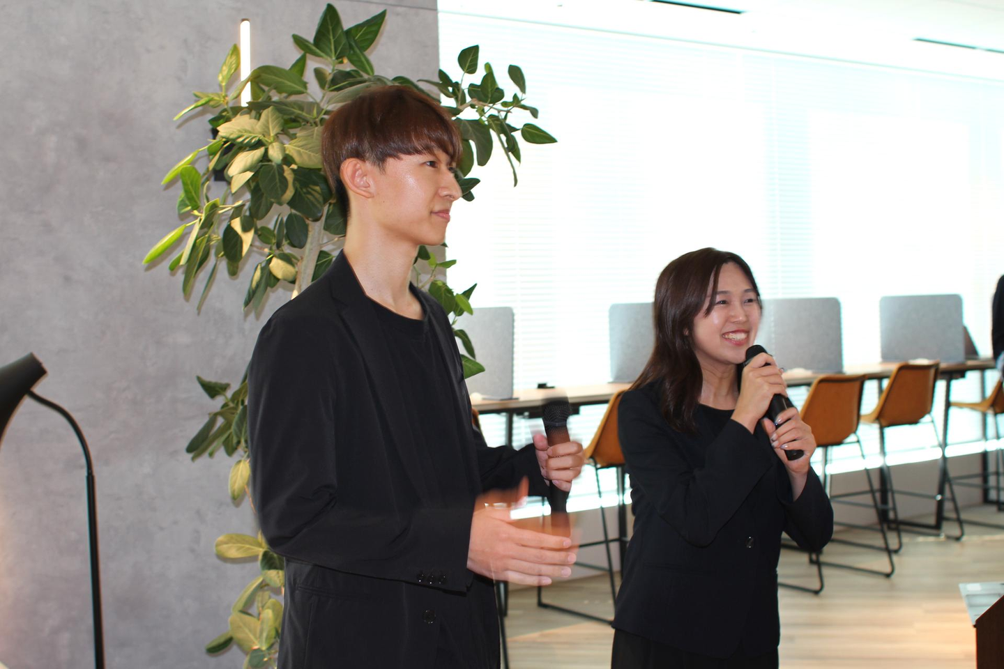 司会を務めるのは新卒入社コンビのOさん(20卒)とAさん(24卒)。ライブ配信風に、画面でもお届けします!