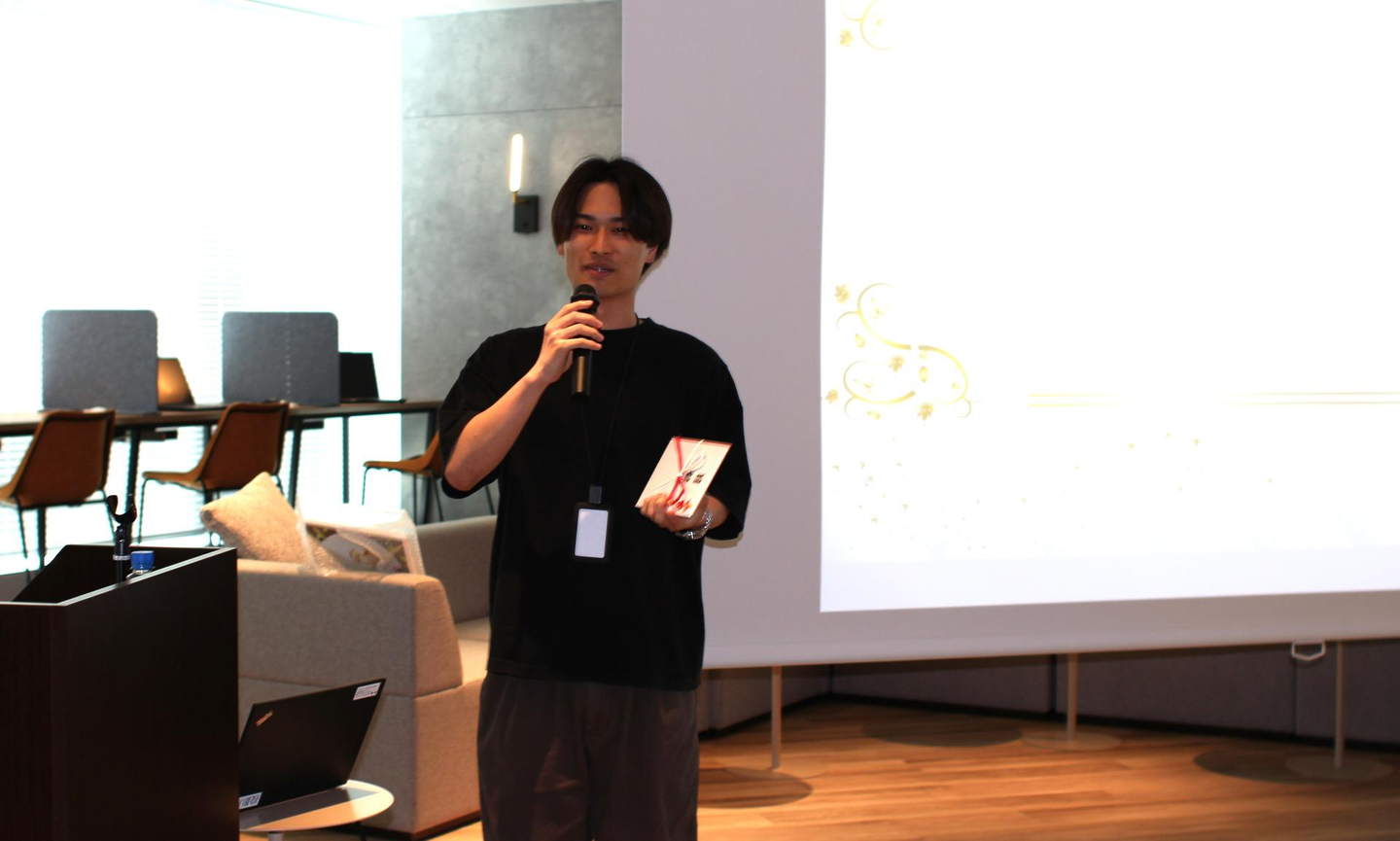 野﨑副社長から閉会の挨拶。全社会の運営を担当したメンバーに向けて、「楽しい会をありがとうございました!みなさんに拍手!」と労いの言葉が贈られました。続いて、「下期に向けての仕込みができた上期だった」と振り返りがあり、最後は恒例の一本締めで締めくくられ、2025年上期の全社会は幕を閉じました。