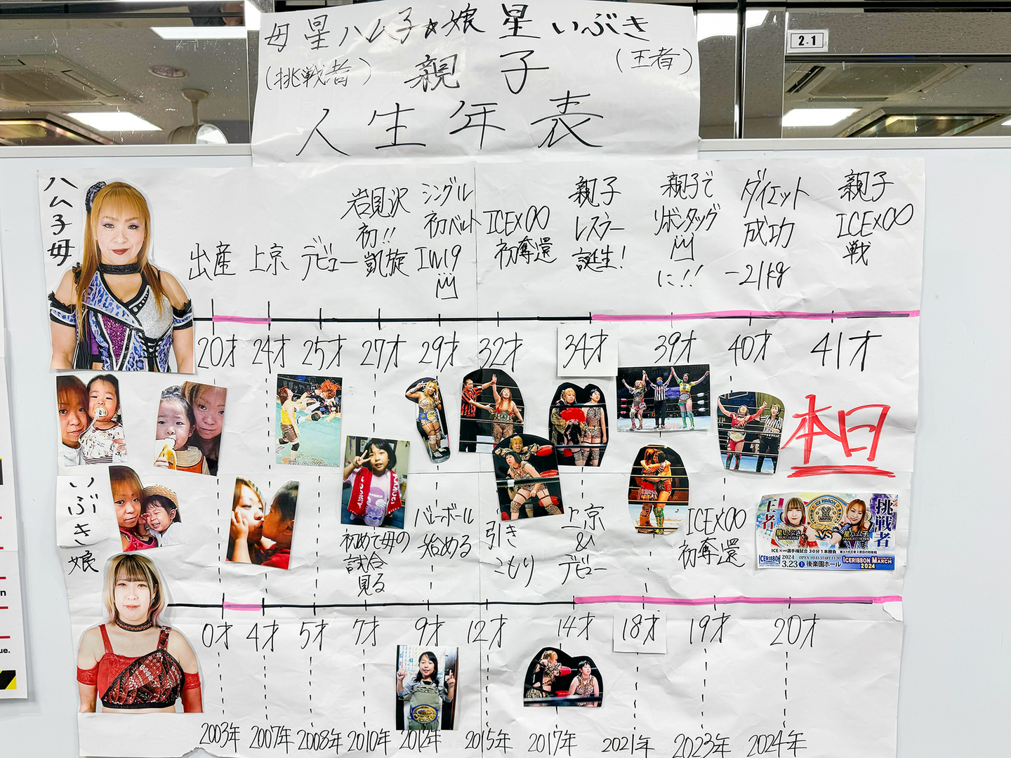 当日、会場には2人の年表が掲示されていました。わかりやすくまとめられているとともに、このタイトルマッチの「意味」の大きさを実感。そして感情移入しながら、観戦できました。