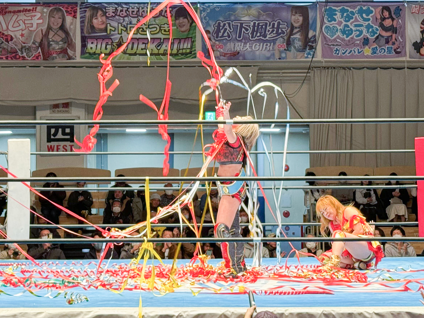 因縁の選手権試合は23分2秒、チャンピオンである娘・いぶきが必殺の「いぶning star」で、母・ハム子を下し、3度目の王座防衛に成功しました。