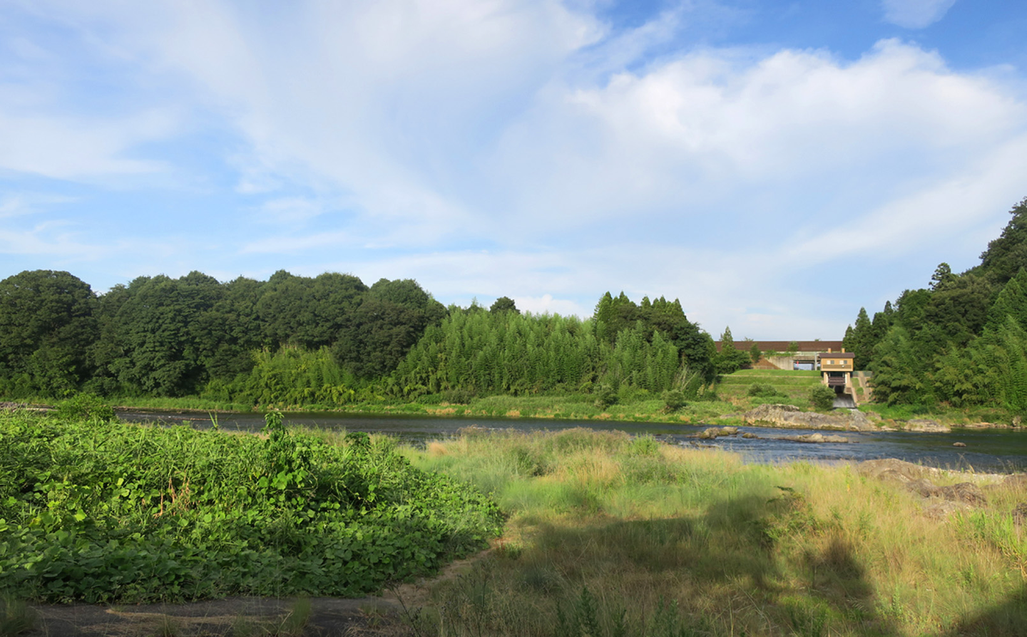 目の前に長良川と緑が広がっていて、とても涼しくて気持ちが良いです。