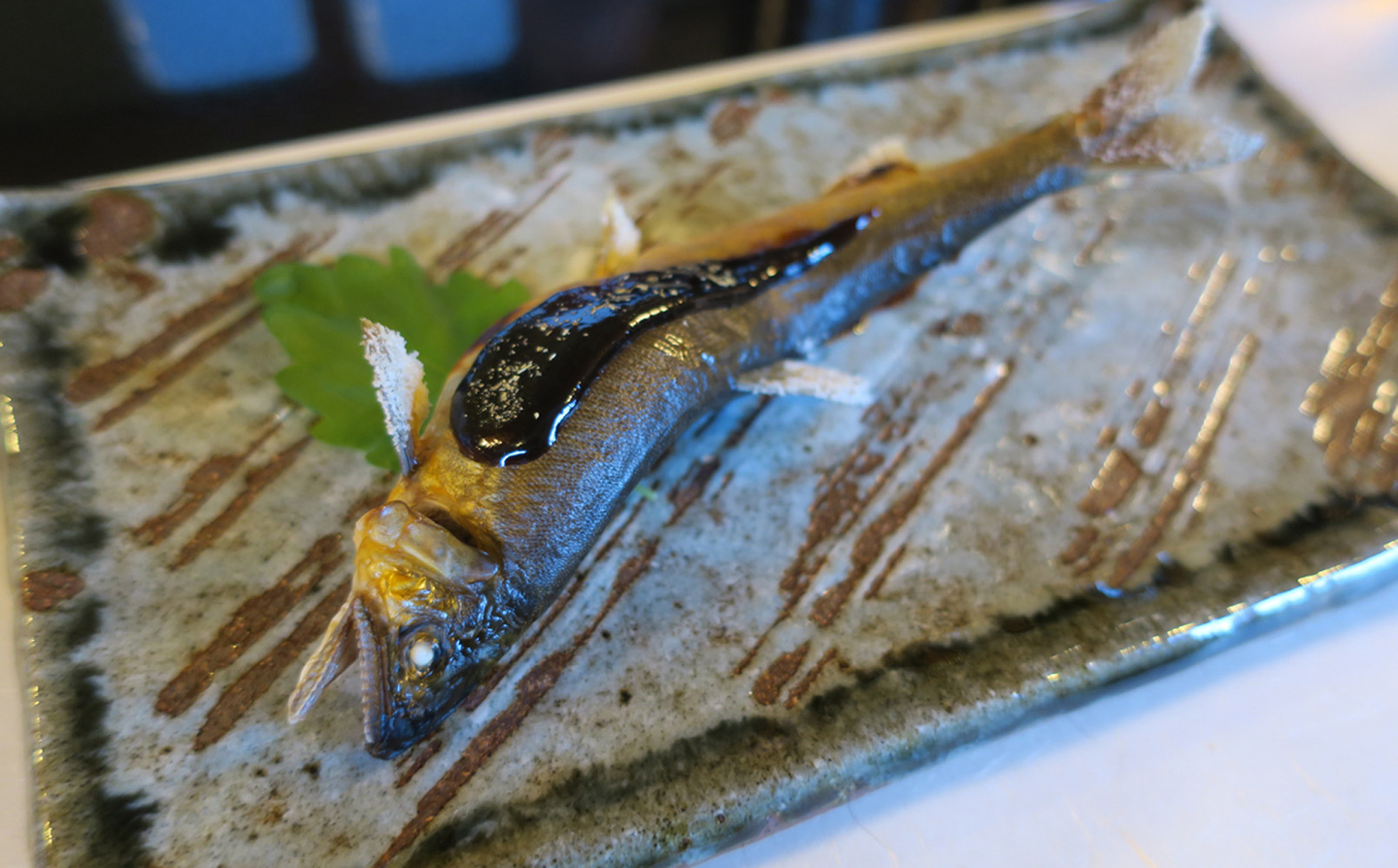 そしてさっそく中におじゃまし、まってましたのお酒と鮎料理です!