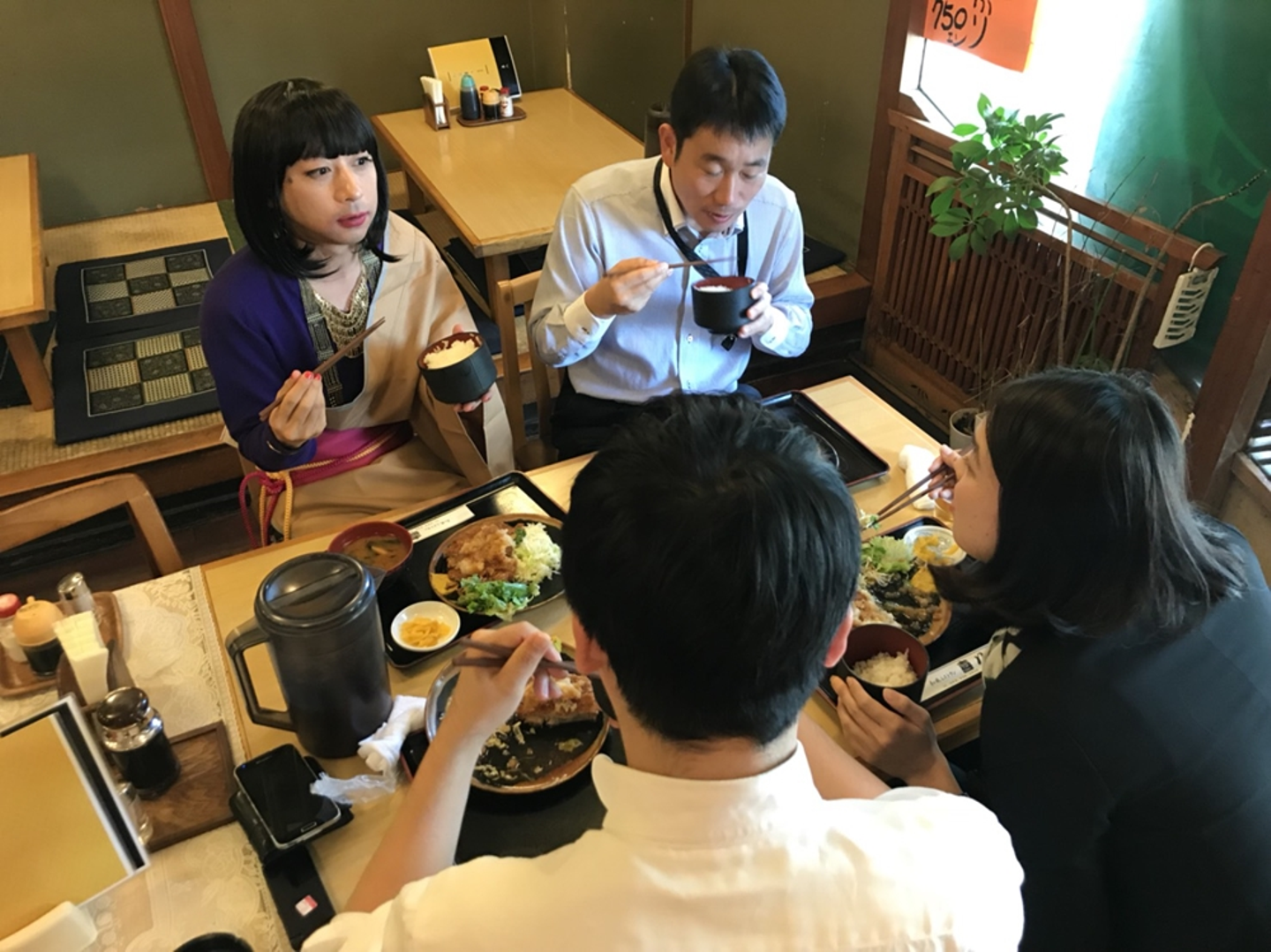 こちらは定食屋さんで見知らぬ人とからむ中森明菜。溶け込んでいますが”知らない人”です。w