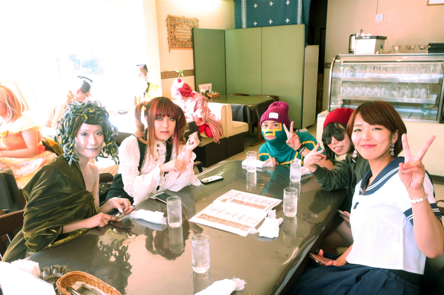 毎年お昼は仮装のままで食事に繰り出します。