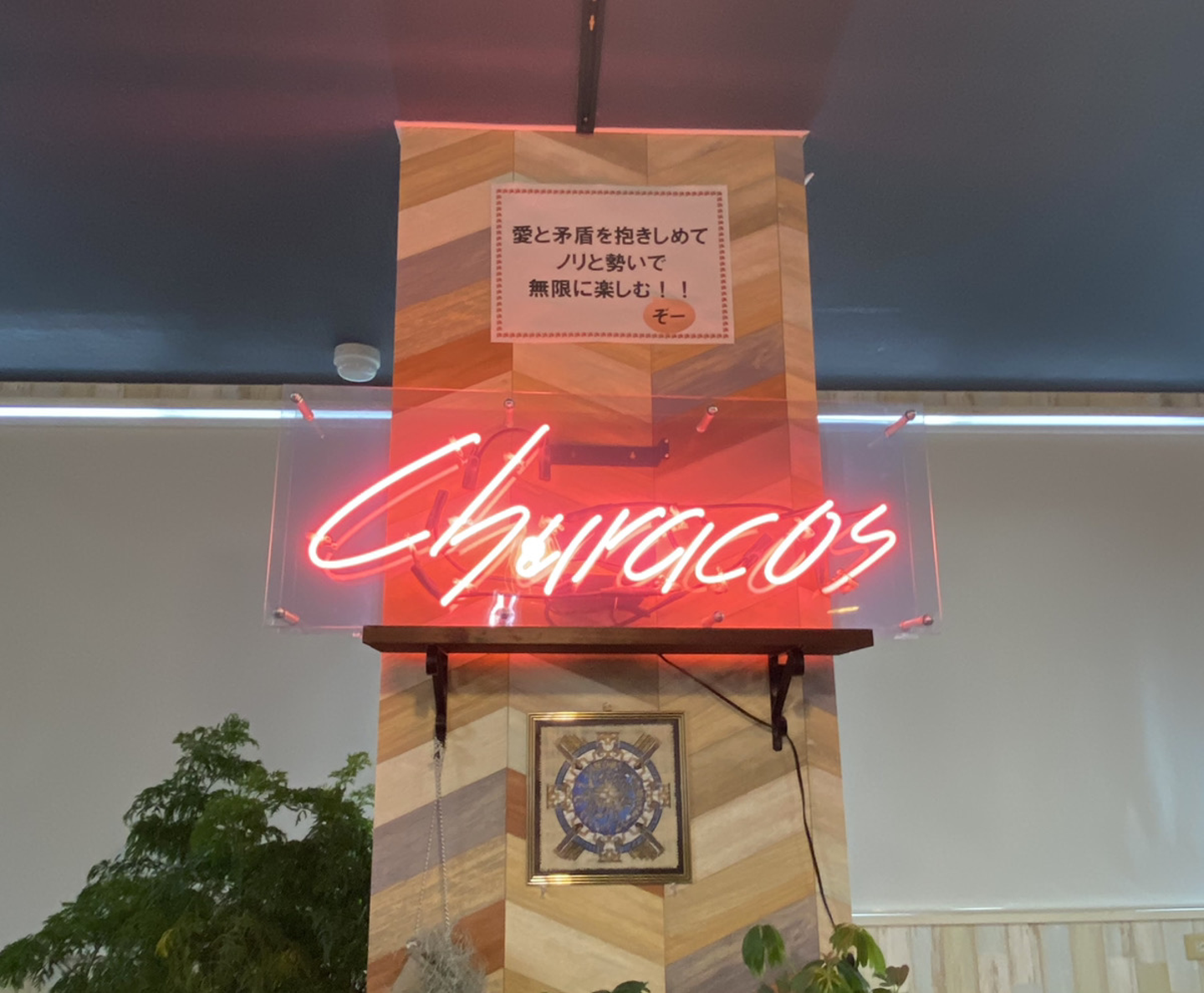 お洒落なネオンと一緒に飾られているこの唱和をしてから朝礼が始まるので、