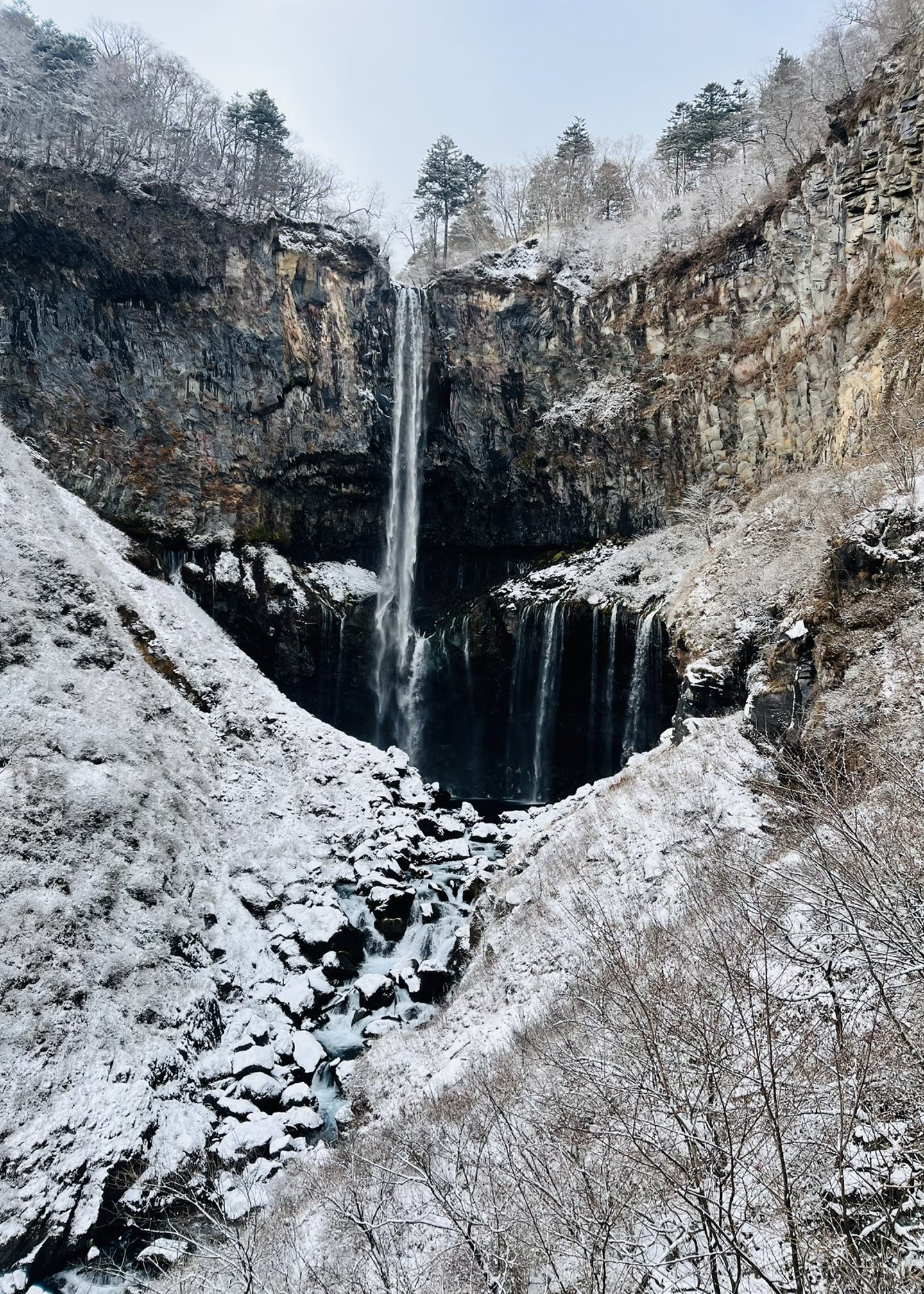 この景色を現地で実際に見た時、自然と思考が止まりました。ただただ美しさに浸る贅沢な時間を過ごすことができ、全身にエネルギーが補充されて、様々なことへの感謝の気持ちが溢れてきました。私は初訪問でしたが、華厳の滝は、修学旅行で訪れる方も多いようですね。山の天気は変わりやすいですが、滝と雪のコラボレーション、ぜひ皆さんも現地訪問して、鑑賞いただきたいなと思いました。