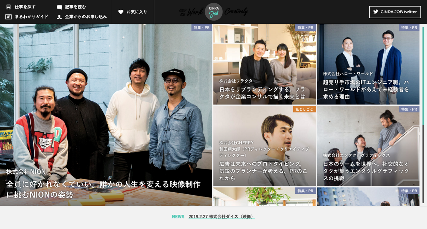 Ownership Companyは、この思いを実現するためにCINRA.JOBというクリエイティブ業界に特化したキャリア支援サービスを運営していいます。CINRA.JOBは広告掲載とエージェントの2つのメニューがあり、これまで多くの求職者と企業を結びつけてきました。