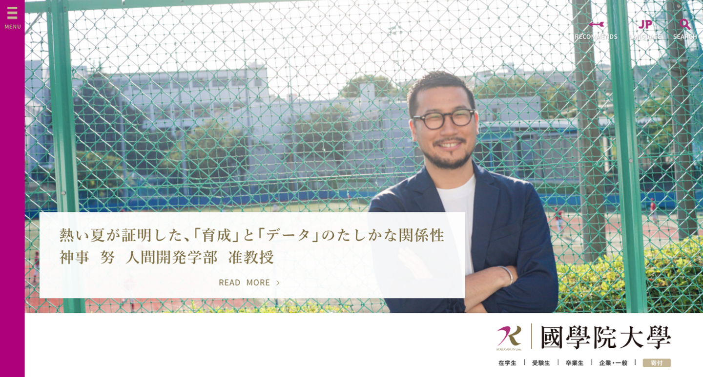こちらのサイトは、従来よりも間口を広げ、多くの方に國學院大學へ関心を持ってもらうため、学内の知的資産や魅力をより積極的に発信する場として活用できるメディアサイトとして設計を行いました。掲載する情報は、閲覧者の興味を引き付ける見出しがついた記事としてコンテンツ化。リニューアル当初は、最新の研究動向や、教員の専門領域についての豆知識、同学の強みである「日本の伝統文化」を紹介するコラムなど、約130本の記事を公開。以降、時事的なテーマや、旬の情報を盛り込みながら、随時コンテンツを追加しています。